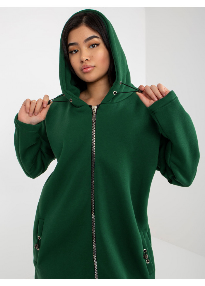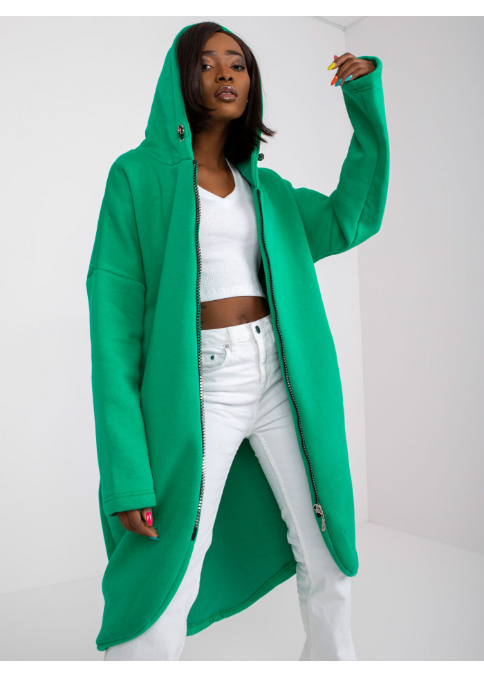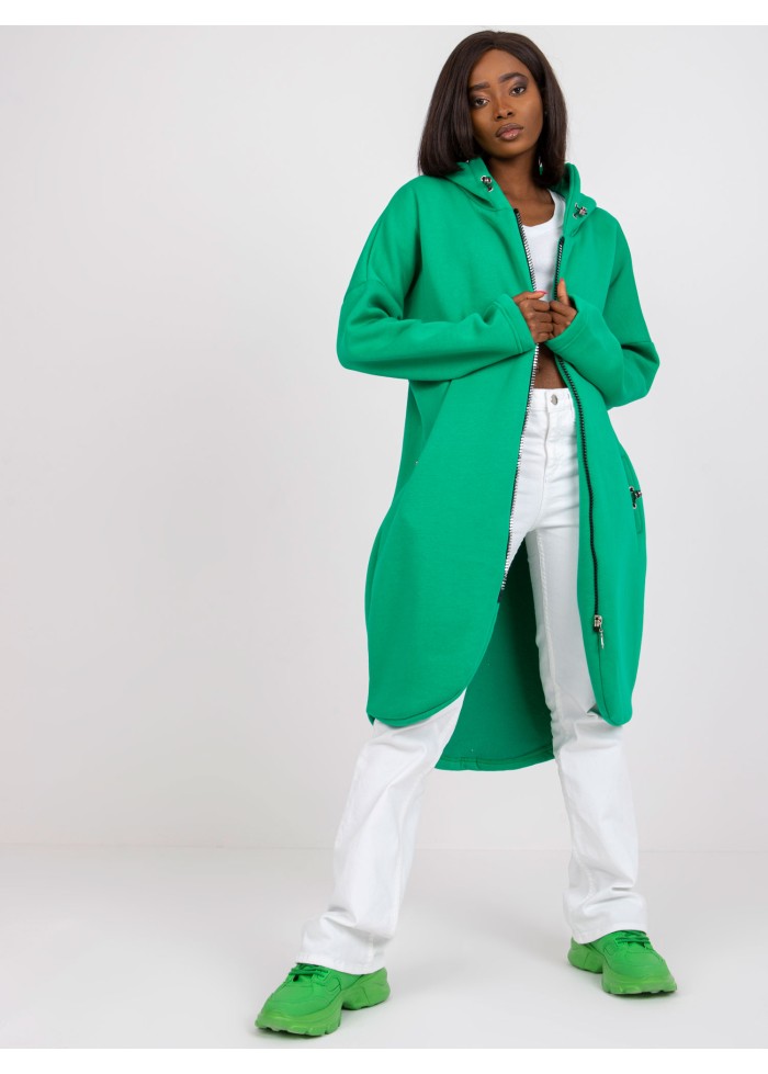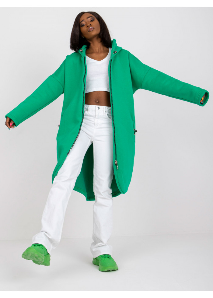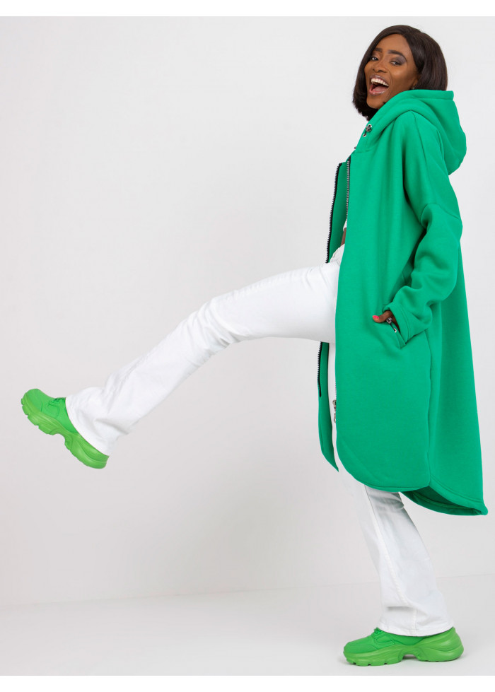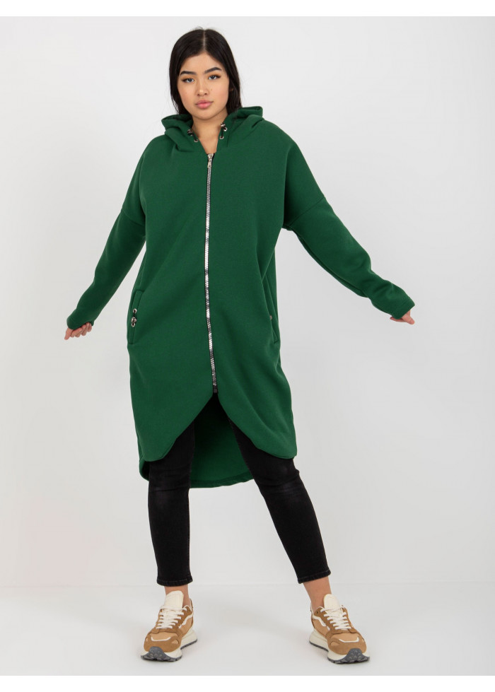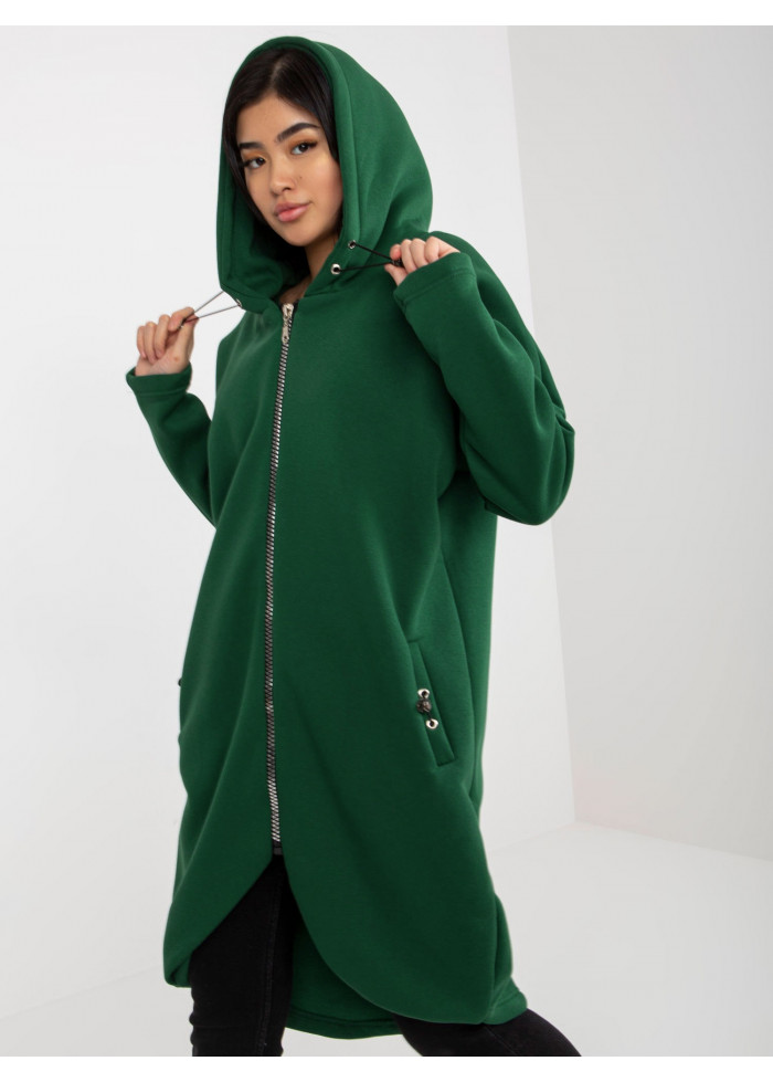 Predĺžená mikina s kapucňou, sťahujúca gumička na kapucni, zapínanie na zips, 2 vrecká, sťahujúce gumičky na vreckách, asymetrický strih, spôsob prania: pranie v práčke na 30°c, materiál: 90% bavlna, 10% elastan, modelka má na sebe veľkosť s/m, miery modelky: výška 162 cm, prsia 80 cm, pás 63 cm, boky 80 cm., rozmer produktu meraného na plocho, vo veľkosti s/m:, šírka pod plecami: 63 cm, celková dĺžka: 98 cm, dĺžka rukávov: 61 cm.