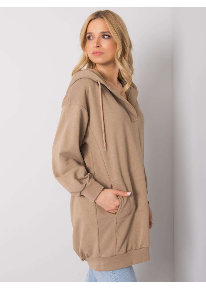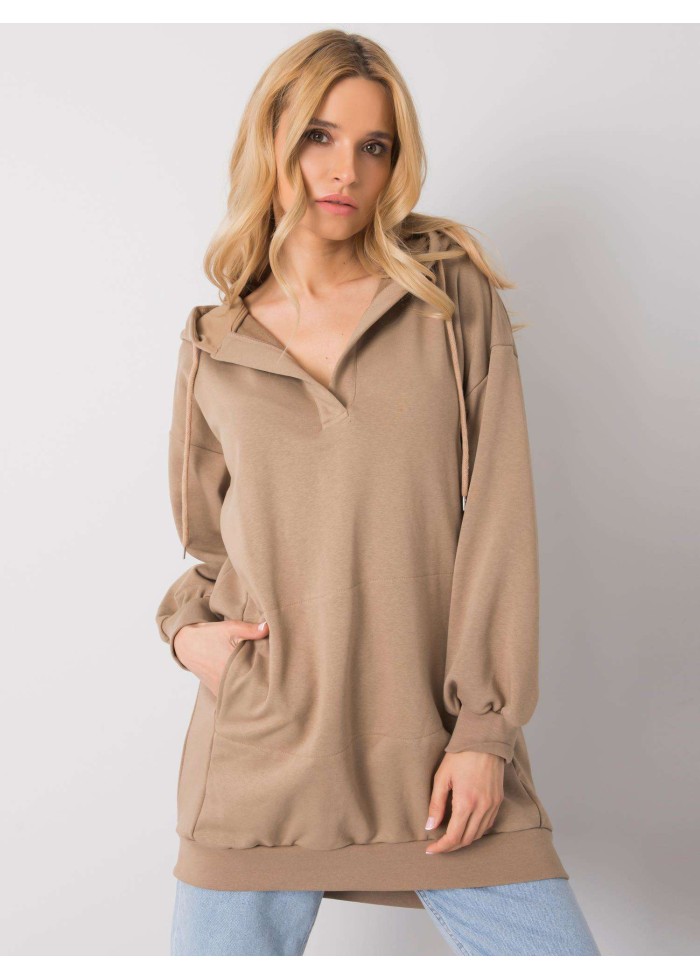 Dámska predĺžená mikina, kapucňa so sťahovacími šnúrkami, v- čkový výstrih, dlhé rukávy, klokanie vrecko, lémy na koncoch rukávov a v spodnej časti, pohodlný strih, materiál: 70% bavlna, 30% polyester, spôsob prania: pranie v práčke na 30°c, modelka má na sebe veľkosť s. rozmery modelky: výška 175 cm, prsia 84 cm, pás 65 cm, boky 92 cm., rozmery mikiny vo veľkosti s merané naplocho: šírka v podpazuší - 58 cm, celková dĺžka - 79 cm, dĺžka rukáva - 52 cm.