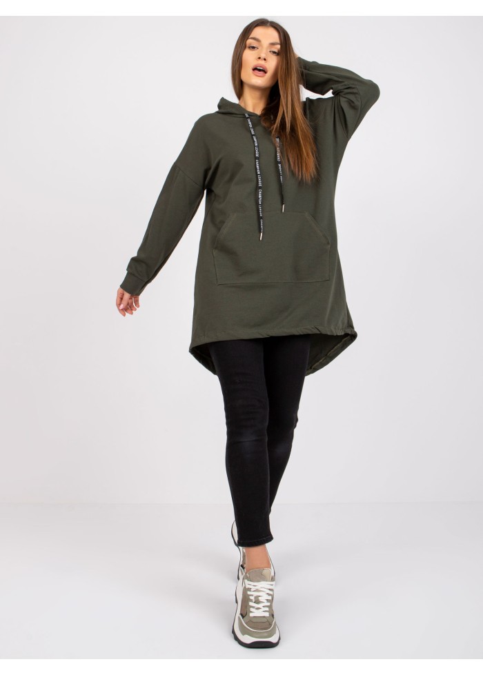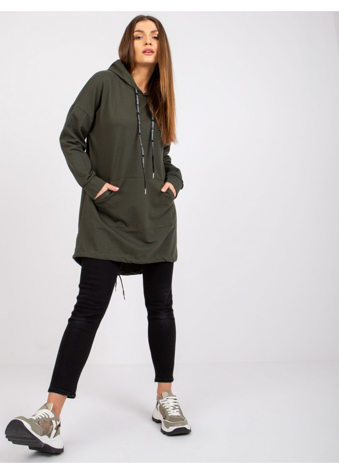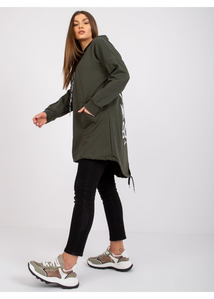 Khaki zelená predĺžená mikina