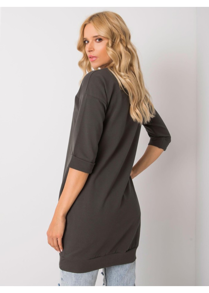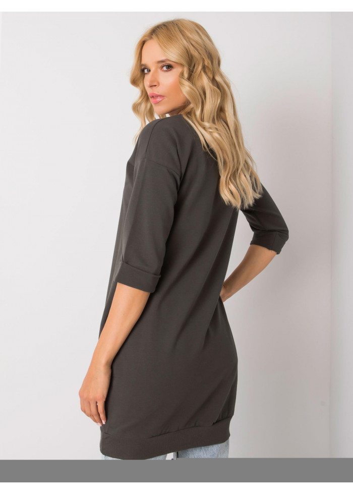 Dámska predĺžená mikina, 3/4 rukávy, okrúhly výstrih, 2 bočné vrecká, našitá aplikácia v spodnej časti, lém na spodnej časti, materiál: 90% bavlna, 10% elastan, spôsob prania: pranie v práčke na 30°c, modelka má na sebe veľkosť s/m. rozmery modelky: výška 167 cm, prsia 82 cm, pás 59 cm, boky 83 cm., rozmery mikiny vo veľkosti s/m merané naplocho: šírka v podpazuší - 48 cm, celková dĺžka - 80 cm, dĺžka rukáva - 34 cm..