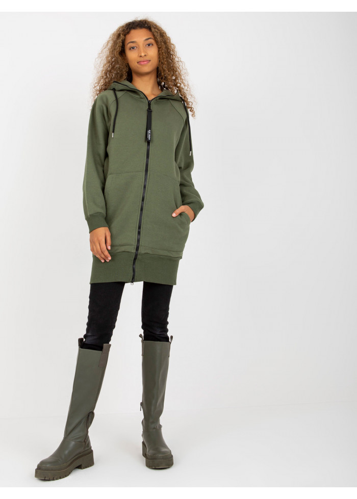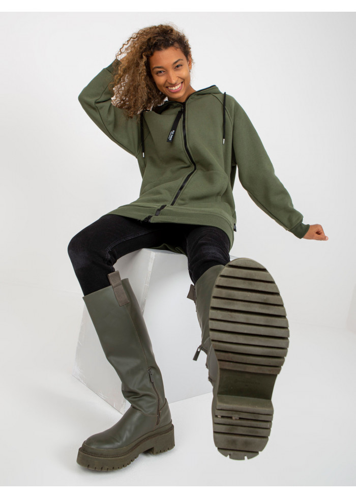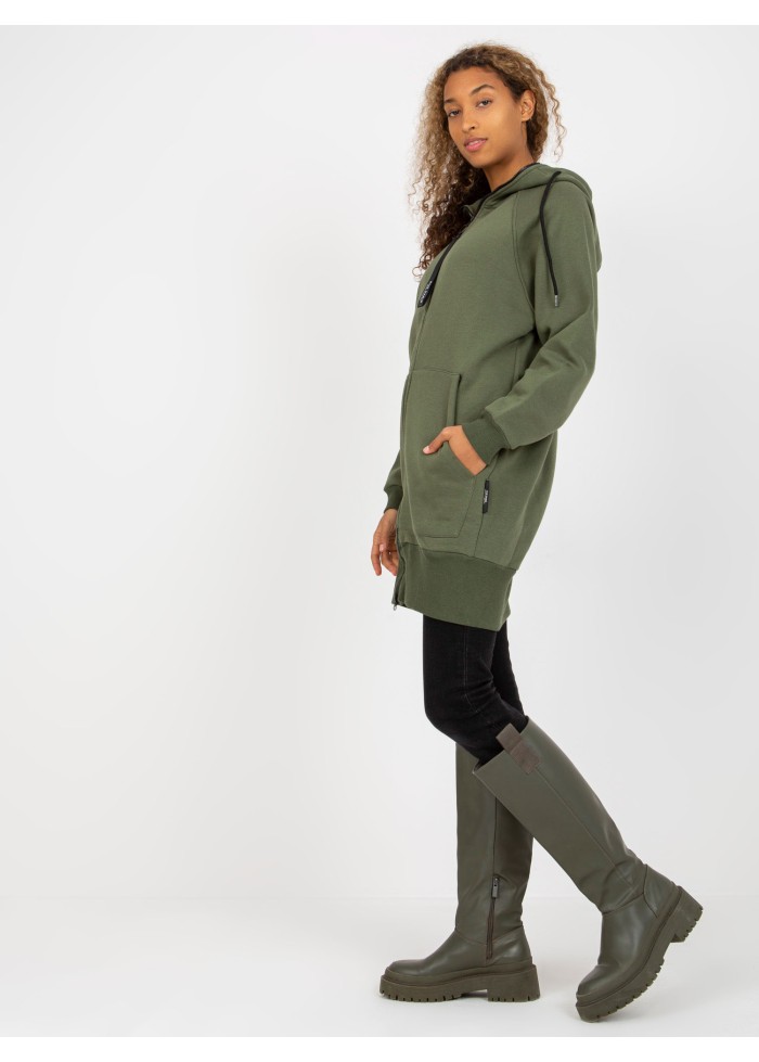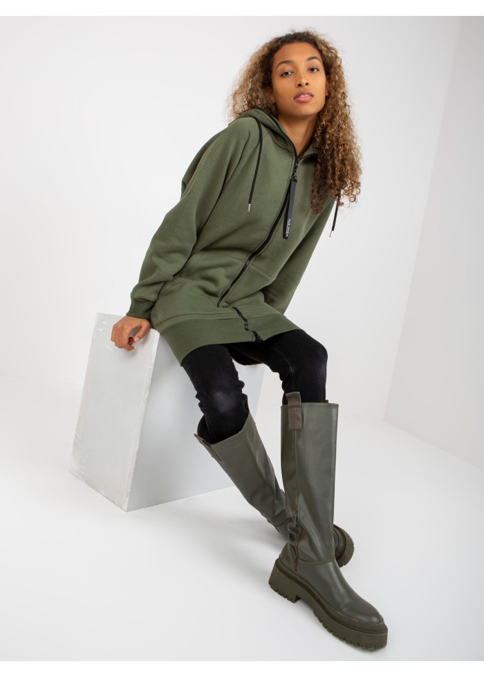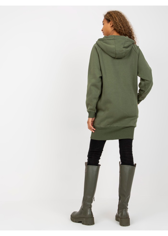 Khaki zelená predĺžená mikina