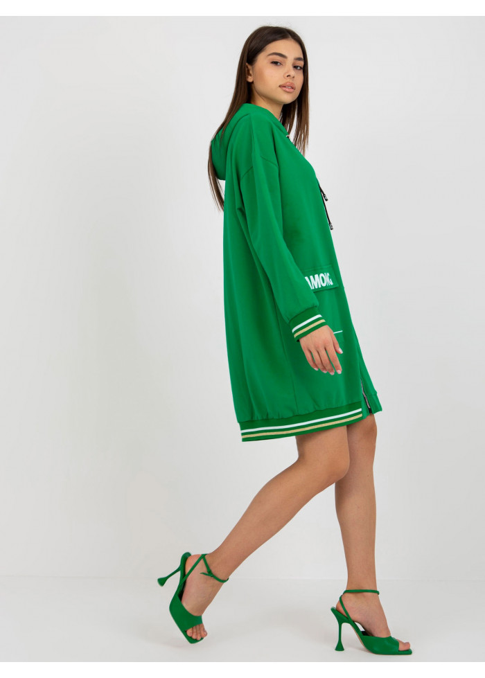 Predĺžená mikina s kapucňou, ozdobné šnúrky na kapucni, zapínanie na zips, ozdobné lémy na rukávoch a spodnej časti, 2 vrecká, jednoduchý voľnejší strih, spôsob prania: pranie v práčke na 30°c, materiál: 90% bavlna, 10% polyester, modelka má na sebe veľkosť s/m, miery modelky: výška 176 cm, prsia 85 cm, pás: 64 cm, boky: 92 cm, rozmer produktu meraného na plocho, vo veľkosti s/m:, šírka pod plecami: 64 cm, dĺžka rukáva: 59 cm, celková dĺžka: 83 cm.