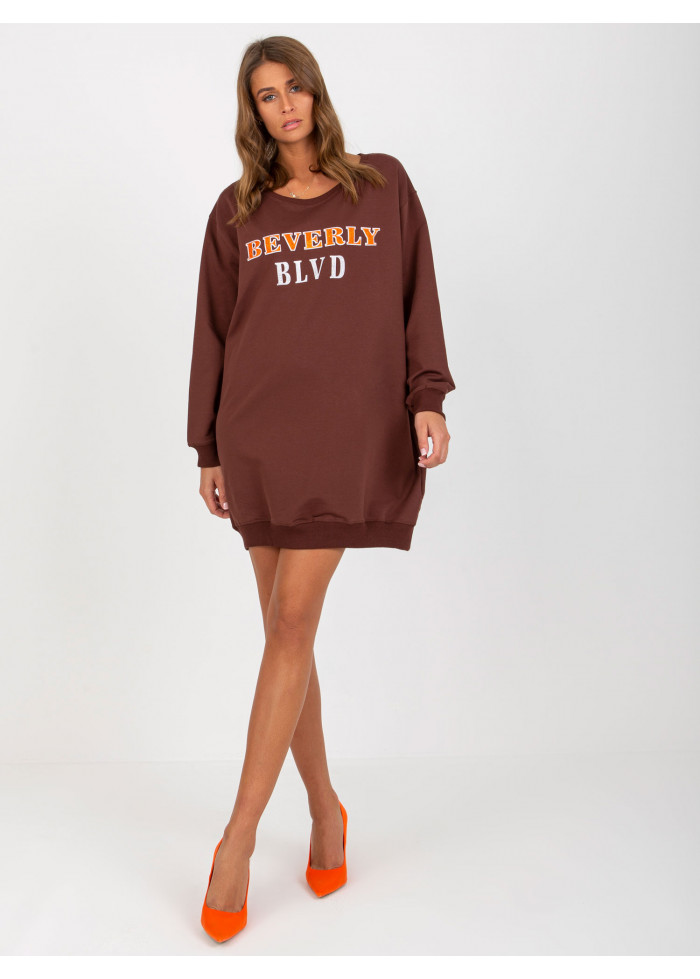 Mikinová tunika, predĺžená mikina, okrúhly výstrih, lémy na koncoch rukávov a v spodnej časti, ozdobný nápis, univerzálna veľkosť, miery modelky: výška: 167 cm, prsia: 73 cm, pás: 64 cm, boky: 91 cm, rozmer produktu meraného na plocho:, šírka pod plecami: 65 cm, dĺžka rukáva: 58 cm, celková dĺžka: 85 cm.