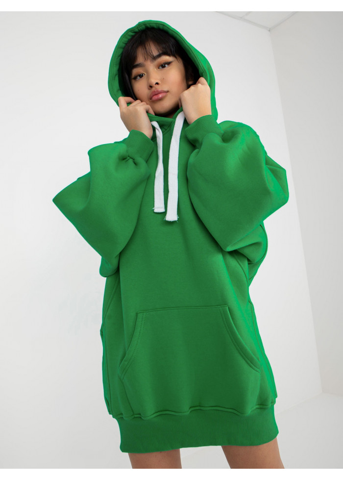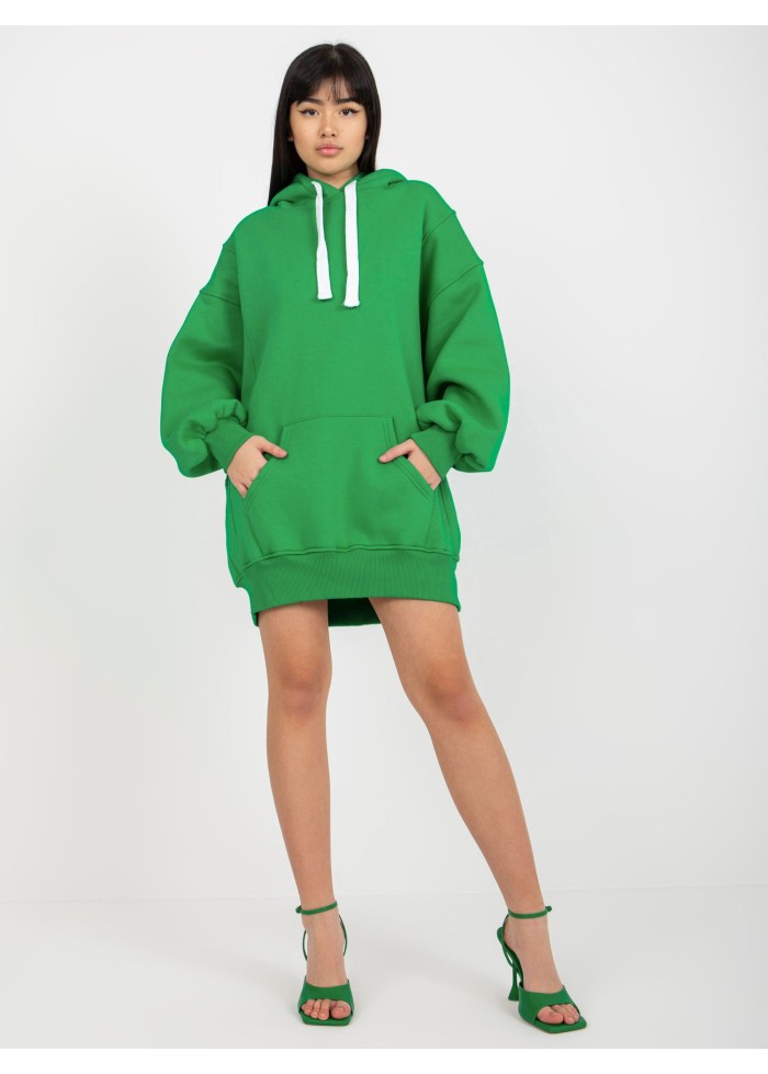 Dámska predĺžená mikina, mikinová tunika s kapucňou, ozdobné šnúrky na kapucni, klokanie vrecko, ozdobne prešívané, univerzálna veľkosť, miery modelky: výška: 172 cm, prsia: 83 cm, pás: 63 cm, boky: 91 cm, rozmer produktu meraného na plocho:, šírka pod plecami: 60 cm, dĺžka rukáva: 64 cm, celková dĺžka: 82 cm.