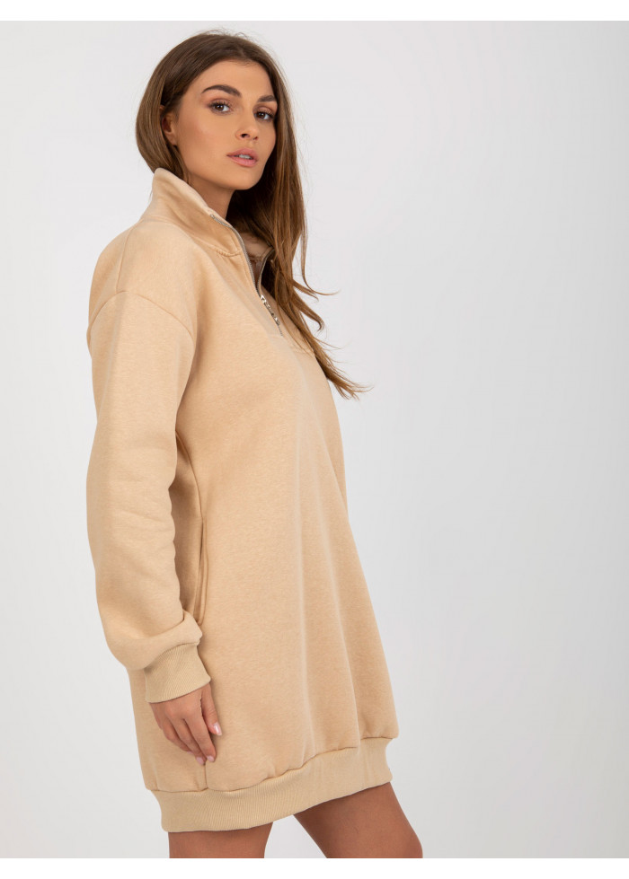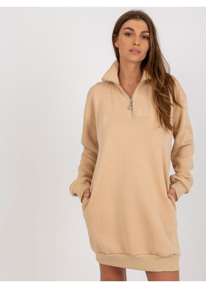 Dámska predĺžená mikina, mikinová tunika, dámske mikinové šaty, od polovice zapínanie na zips, lémy na koncoch rukávov a v spodnej časti, 2 vrecká, univerzálna veľkosť, miery modelky: výška 170 cm, prsia 93 cm, pás 66 cm, boky 93 cm., rozmer produktu meraného na plocho:, šírka pod plecami: 58 cm, dĺžka rukáva: 63 cm, celková dĺžka: 83 cm.