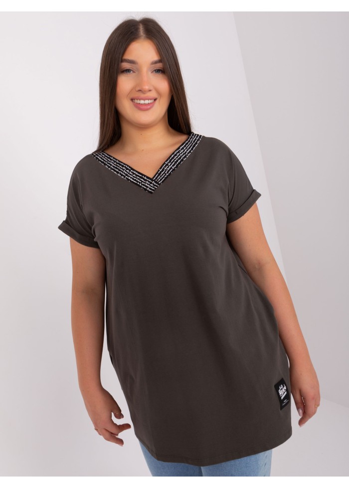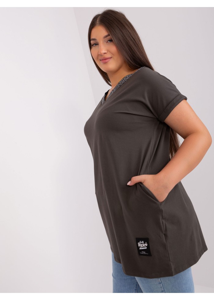 Dámske predĺžené tričko, krátky rukáv s ozdobným lémom, 2 vrecká, ozdobné aplikácie, výstrih do v aj vzadu, výrazný výstrih vzadu, ozdobný lém v dekolte, jednoduchý strih, spôsob prania: pranie v práčke na 30°c, materiál: 90% bavlna, 10% elastan, univerzálna veľkosť, miery modelky: výška: 175 cm, prsia: 90 cm, pás: 71 cm, boky: 100 cm, rozmer produktu meraného na plocho:, šírka pod plecami: 61 cm, celková dĺžka: 86 cm.