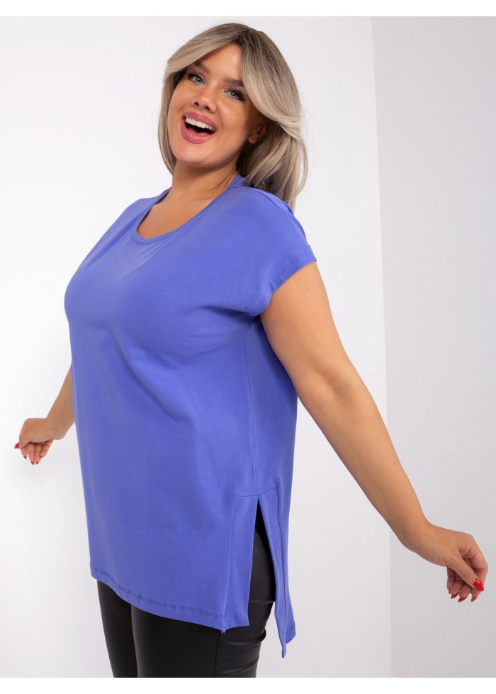 Bavlnené dámske tričko, okrúhly výstrih, krátky rukáv, rozparky po bokoch, asymetrický strih, univerzálna veľkosť, miery modelky: výška 172 cm, prsia 103 cm, pás 73 cm, boky 103 cm., rozmer produktu meraného na plocho:, šírka pod plecami: 60 cm, celková dĺžka: vpredu: 68 cm, vzadu: 77 cm.