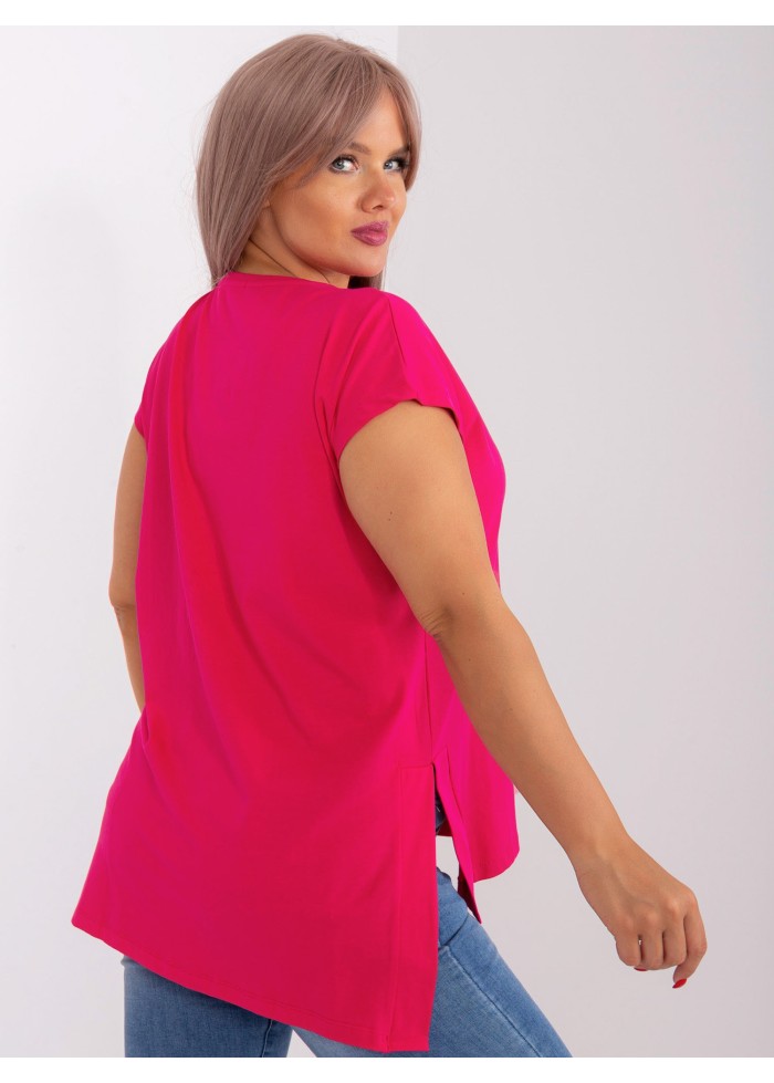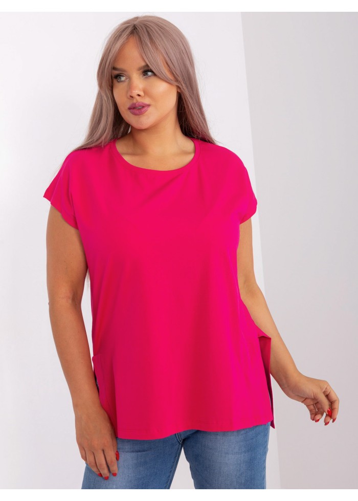 Bavlnené dámske tričko, okrúhly výstrih, krátky rukáv, rozparky po bokoch, asymetrický strih, univerzálna veľkosť, miery modelky: výška 172 cm, prsia 103 cm, pás 73 cm, boky 103 cm., rozmer produktu meraného na plocho:, šírka pod plecami: 60 cm, celková dĺžka: vpredu: 68 cm, vzadu: 77 cm.