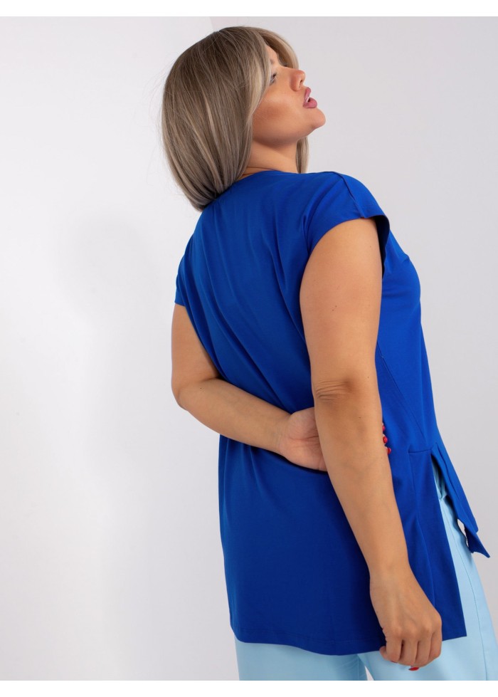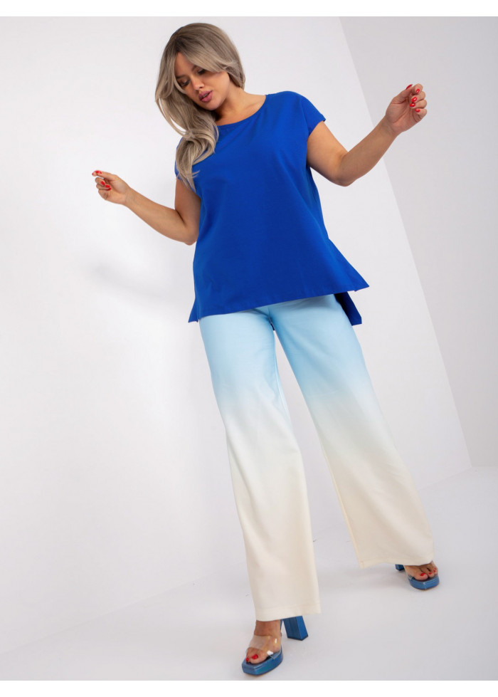Bavlnené dámske tričko, okrúhly výstrih, krátky rukáv, rozparky po bokoch, asymetrický strih, univerzálna veľkosť, miery modelky: výška 172 cm, prsia 103 cm, pás 73 cm, boky 103 cm., rozmer produktu meraného na plocho:, šírka pod plecami: 60 cm, celková dĺžka: vpredu: 68 cm, vzadu: 77 cm.