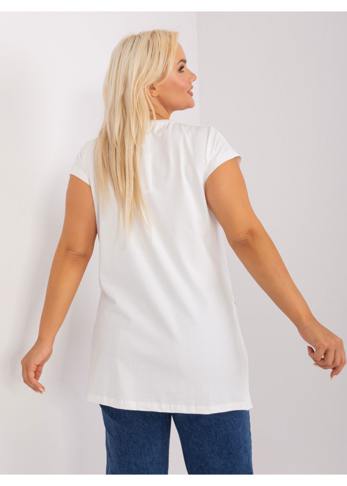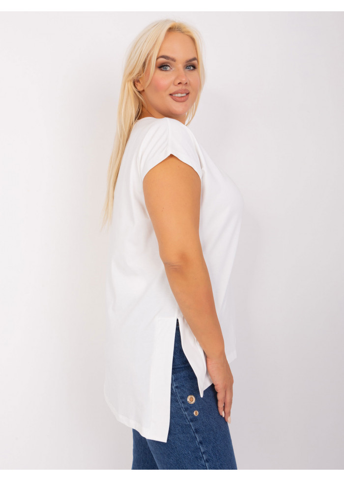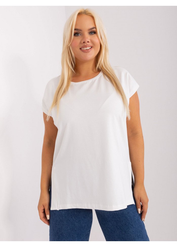 Bavlnené dámske tričko, okrúhly výstrih, krátky rukáv, rozparky po bokoch, asymetrický strih, univerzálna veľkosť, miery modelky: výška 172 cm, prsia 103 cm, pás 73 cm, boky 103 cm., rozmer produktu meraného na plocho:, šírka pod plecami: 60 cm, celková dĺžka: vpredu: 68 cm, vzadu: 77 cm.