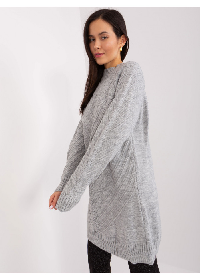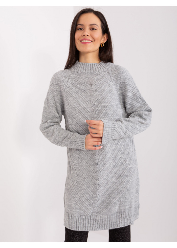 Dámsky predĺžený rolák, polorolák, jemný pletený vzor, univerzálna veľkosť, miery modelky: výška 176 cm, prsia 85 cm, pás 64 cm, boky 92 cm, rozmer produktu meraného na plocho:, šírka pod plecami: 65 cm, dĺžka rukáva: 60 cm, celková dĺžka: 85 cm.