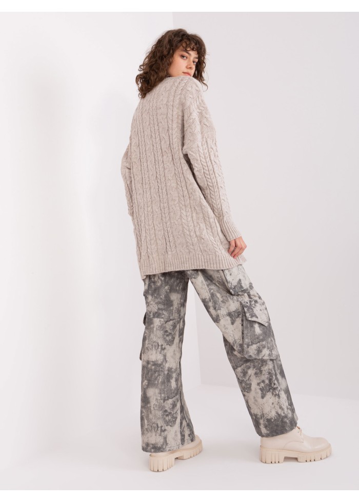 Béžovo hnedý predĺžený pulóver