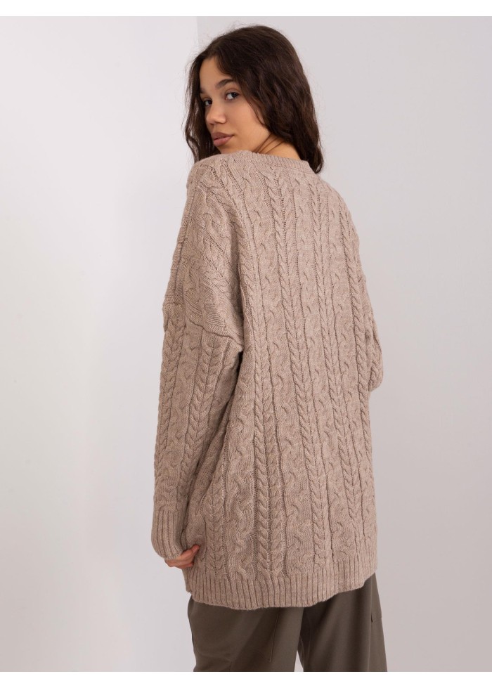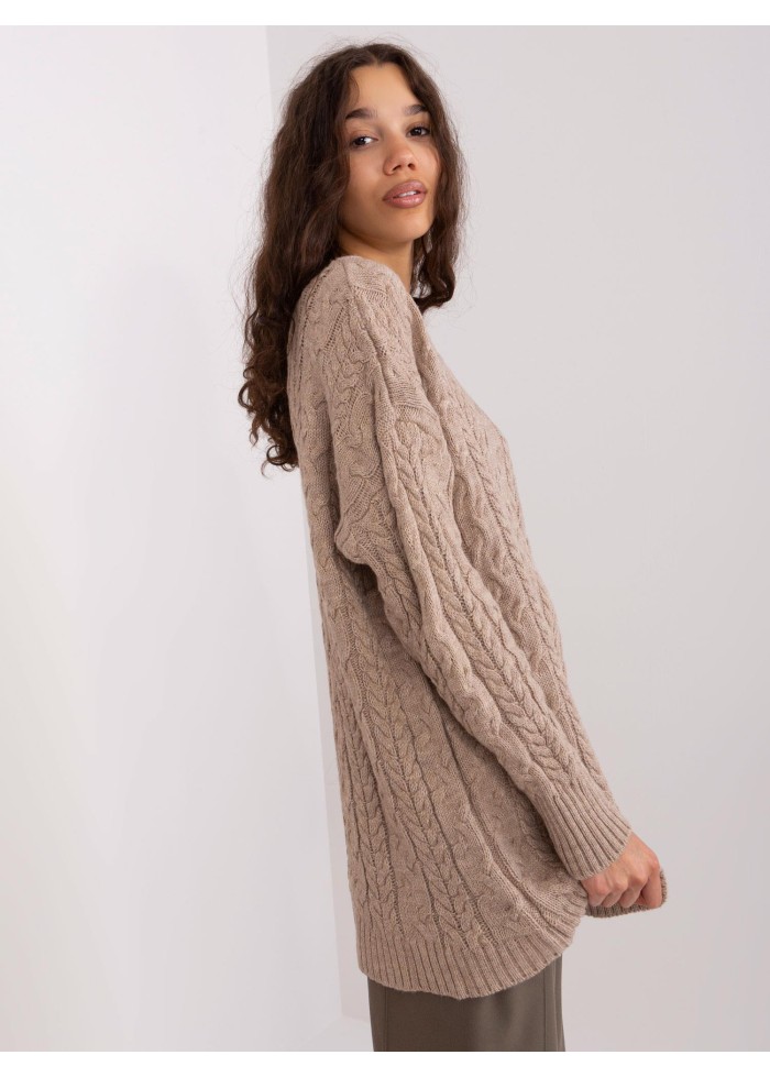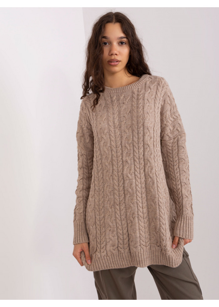 Predĺžený pulóver, pletený vzor, oversize strih, okrúhly výstrih, univerzálna veľkosť, miery modelky: výška: 178 cm, prsia: 80 cm, pás: 58 cm, boky: 88 cm, rozmer produktu meraného na plocho:, šírka pod plecami: 70 cm, dĺžka rukáva: 62 cm, celková dĺžka: 76 cm.