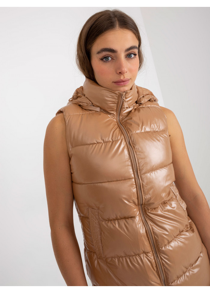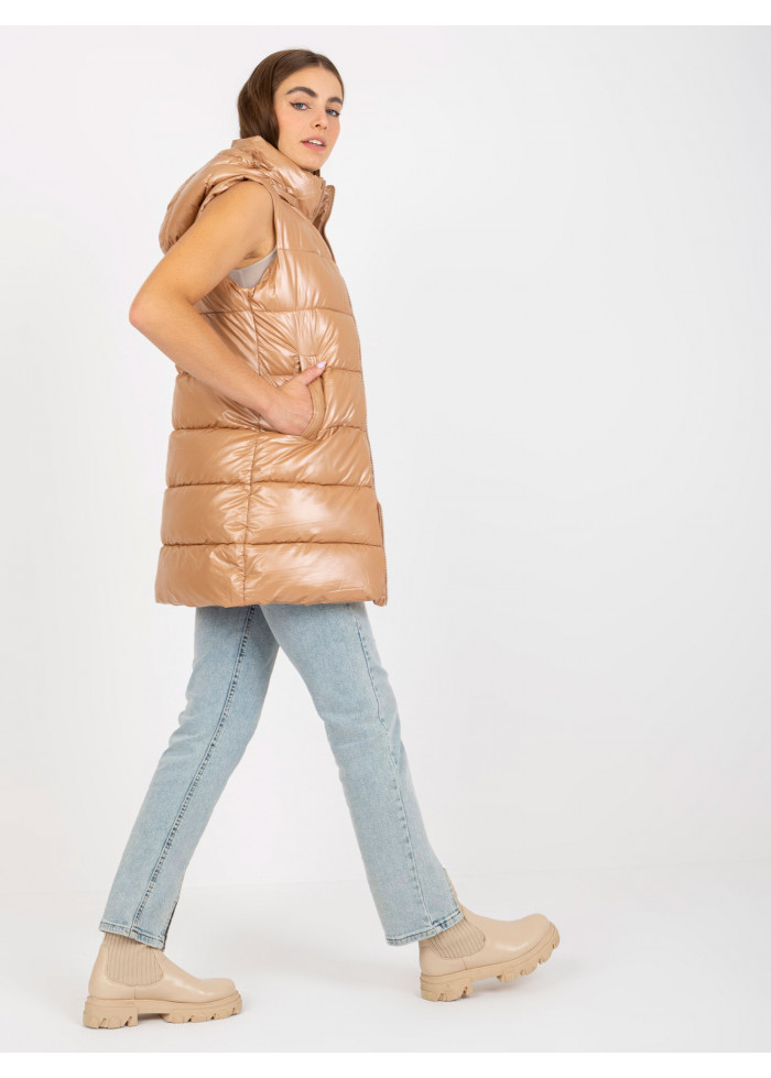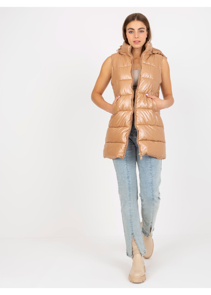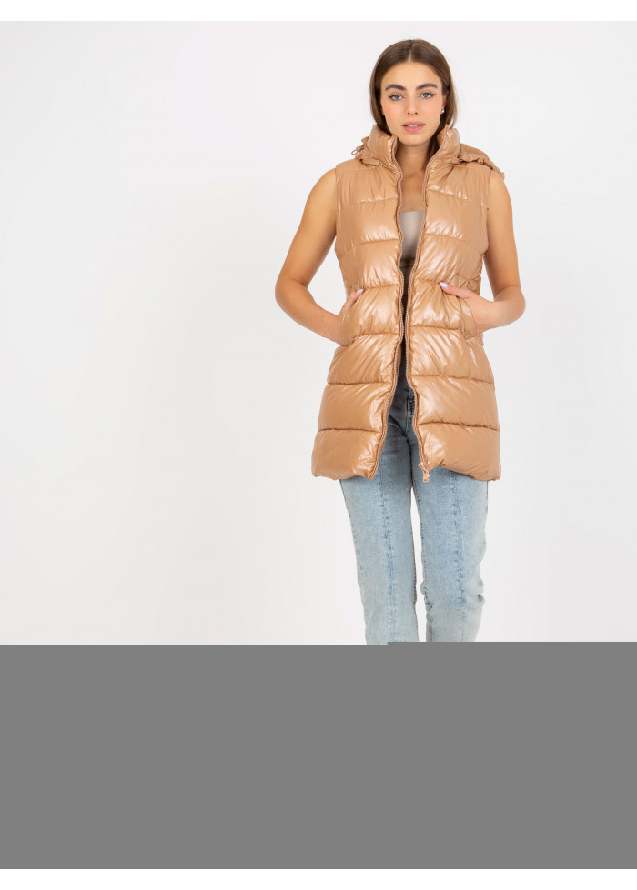 Dámska prešívaná vesta s kapucňou, odopínateľná kapucňa s možnosťou stiahnutia elastickou šnúrkou, zapínanie na zips, 2 vrecká, modelka má na sebe veľkosť s, miery modelky: výška: 177 cm, prsia: 92 cm, pás: 63 cm, boky: 93 cm, rozmer produktu meraného na plocho:, šírka pod plecami: 50 cm, celková dĺžka: 83 cm.