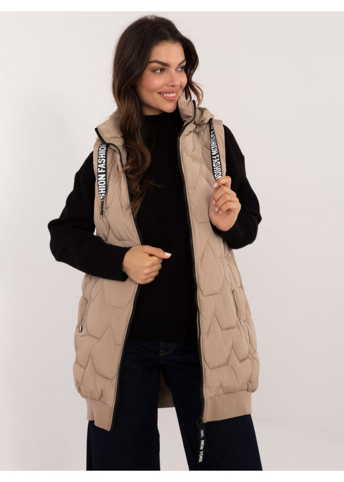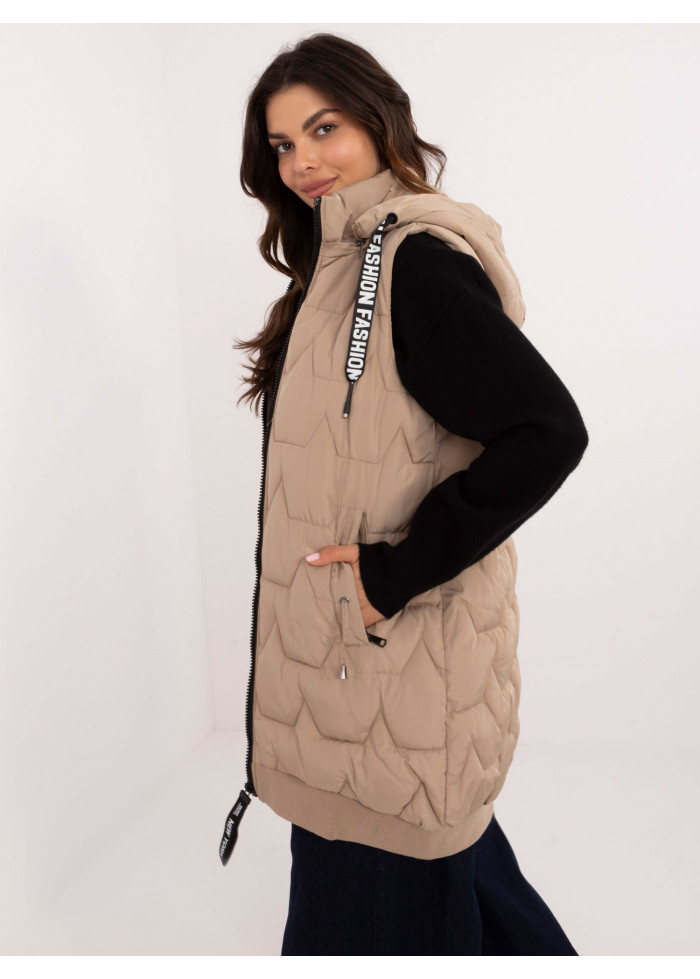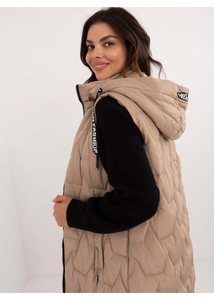 Béžovo hnedá prešívaná vesta bez rukávov