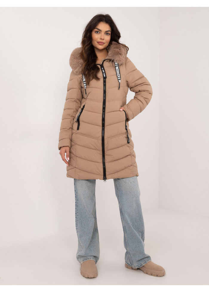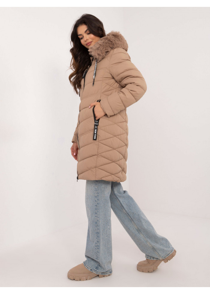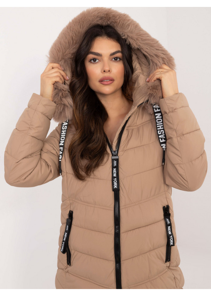 Béžovo hnedá prešívaná zimná bunda