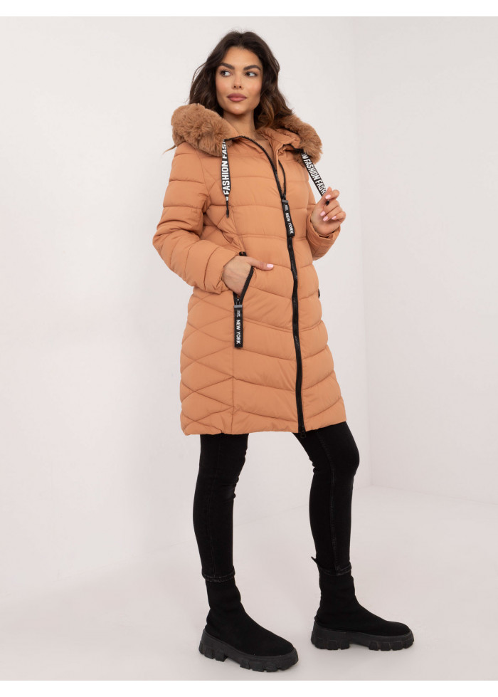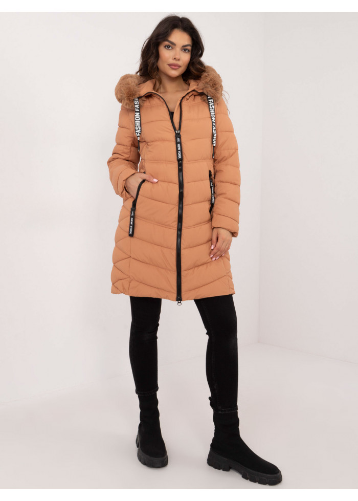 Prešívaná dámska bunda s kapucňou, dlžka nad kolena, kapucňa s kožušinou, kontrastné šnúrky na kapucni, 2 bočné vrecká na zips, modelka má na sebe veľkosť s, miery modelky: výška 173 cm, prsia 85 cm, pás 62 cm, boky 95 cm, rozmer produktu meraného na plocho, vo veľkosti s:, šírka v podpazuší - 54 cm, celková dĺžka - 86 cm, dĺžka rukáva - 59 cm.