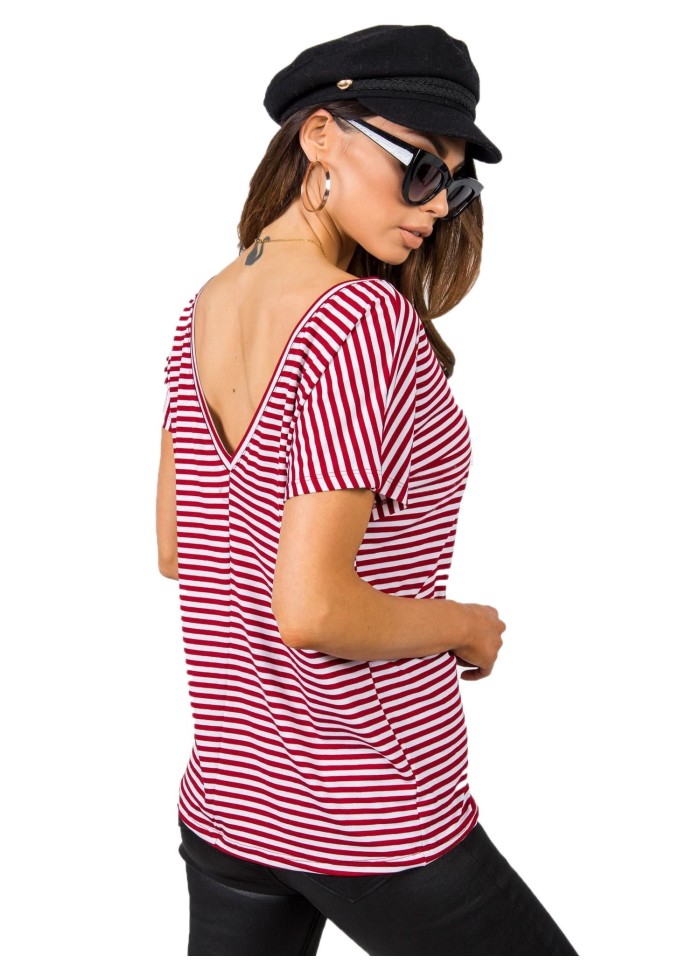 Rue paris, pruhované tričko, okrúhly výstrih, výrazný výstrih do v vzadu, spôsob prania: pranie v práčke na 30°c, materiál: 95% viskóza, 5% lycra, modelka má na sebe veľkosť s, miery modelky: výška 175 cm, prsia 84 cm, pás 65 cm, boky 92 cm..