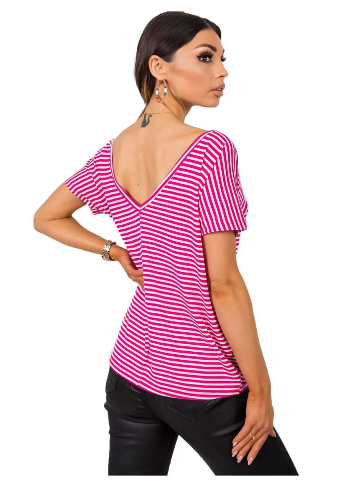 Rue paris, pruhované tričko, okrúhly výstrih, výrazný výstrih do v vzadu, spôsob prania: pranie v práčke na 30°c, materiál: 95% viskóza, 5% lycra, modelka má na sebe veľkosť s, miery modelky: výška 175 cm, prsia 84 cm, pás 65 cm, boky 92 cm..