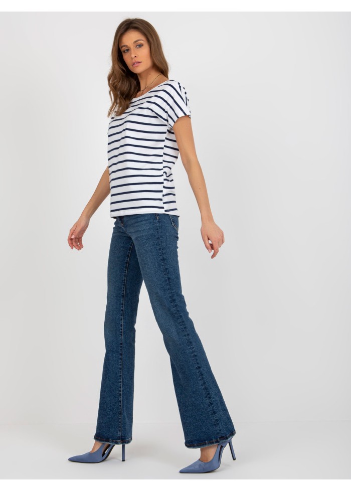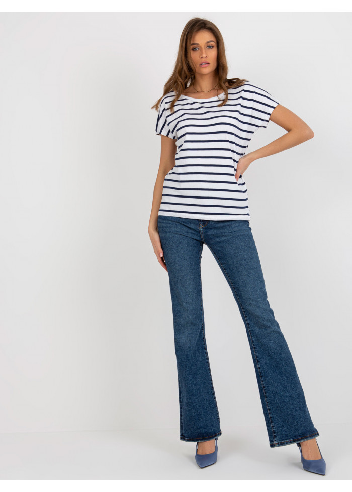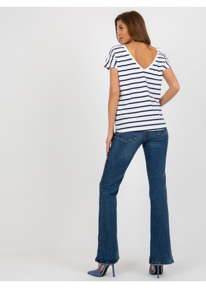Pruhované tričko, výrazný výstrih do v vzadu, krátky rukáv, jednoduchý voľnejší strih, spôsob prania: pranie v práčke na 30°c, materiál: 80% bavlna, 10% polyester, 10% elastan, modelka má na sebe veľkosť s, miery modelky: výška 176 cm, prsia 85 cm, pás: 64 cm, boky: 92 cm, rozmer produktu meraného na plocho, vo veľkosti s:, šírka pod plecami: 54 cm, celková dĺžka: 64 cm.