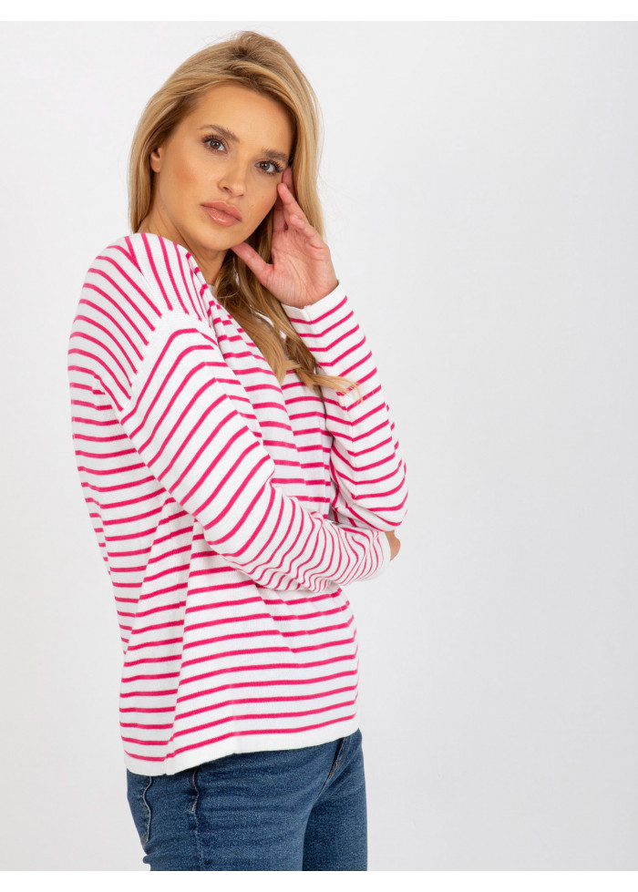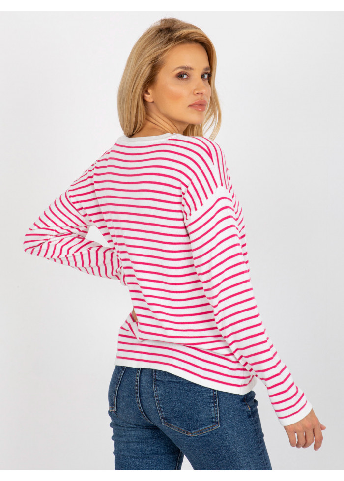 Dámsky pulóver z jemného úpletu, okrúhly výstrih, dlhý rukáv, jednoduchý strih, spôsob prania: pranie v práčke na 30°c, materiál: 95% akryl, 5% polyester, univerzálna veľkosť, miery modelky: výška 175 cm, prsia 84 cm, pás 65 cm, boky 92 cm., rozmer produktu meraného na plocho:, šírka pod plecami: 52 cm, dĺžka rukáva: 58 cm, celková dĺžka: 61 cm.