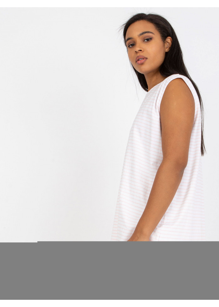 Dámsky top bez rukávov, lodičkový výstrih, jednoduchý strih do a, spôsob prania: pranie v práčke na 30°c, materiál: 90% bavlna, 10% elastan, univerzálna veľkosť, miery modelky: výška: 176 cm, prsia: 104 cm, pás: 87 cm, boky: 119 cm, rozmer produktu meraného na plocho:, šírka pod plecami: 64 cm, celková dĺžka: 75 cm.