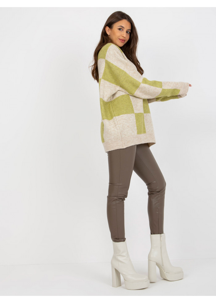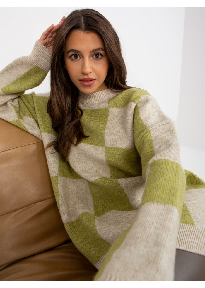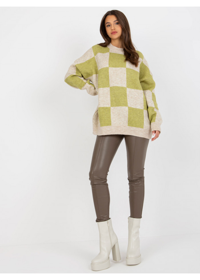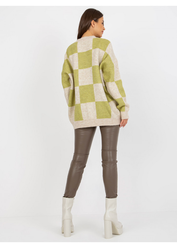 Dámsky pulóver z jemného úpletu, šachovnicový vzor, okrúhly výstrih, jemné sťahujúce lémy na koncoch rukávov a v spodnej časti, voľnejší strih, spôsob prania: pranie v práčke na 30°c, materiál: 90% bavlna, 10% polyester, univerzálna veľkosť, miery modelky: výška 176 cm, prsia 85 cm, pás: 64 cm, boky: 92 cm, rozmer produktu meraného na plocho:, šírka pod plecami: 69 cm, dĺžka rukáva: 62 cm, celková dĺžka: 72 cm.