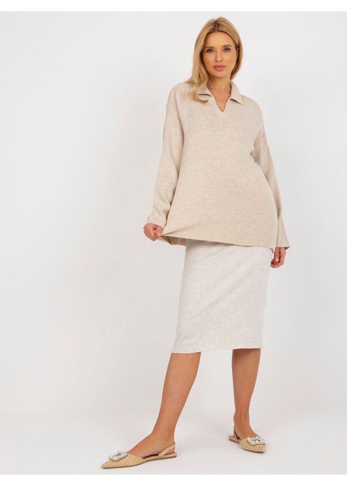 Dámsky pulóver z jemného úpletu, dekolt s golierom, výstrih do v, dlhé rukávy, jednoduchý strih, univerzálna veľkosť, miery modelky: výška 175 cm, prsia 84 cm, pás 65 cm, boky 92 cm., rozmer produktu meraného na plocho:, šírka pod plecami: 65 cm, dĺžka rukáva: 60 cm, celková dĺžka: 71 cm.