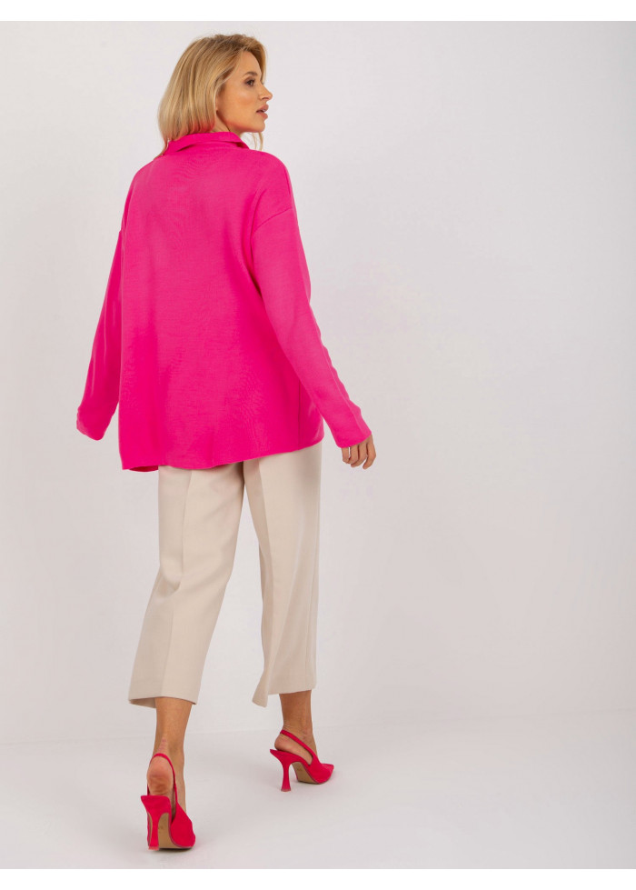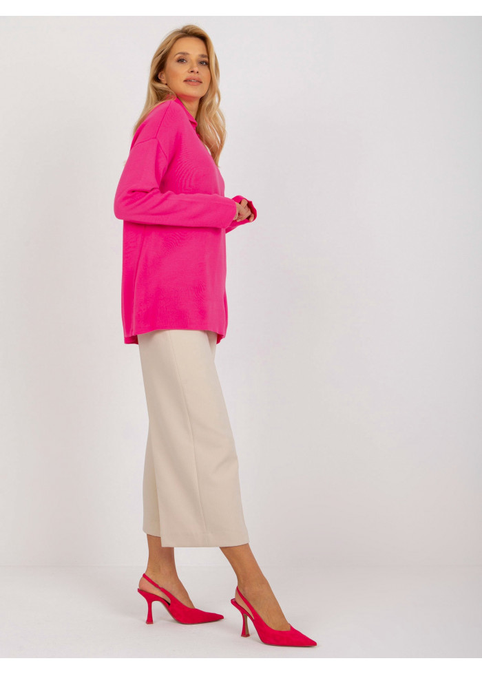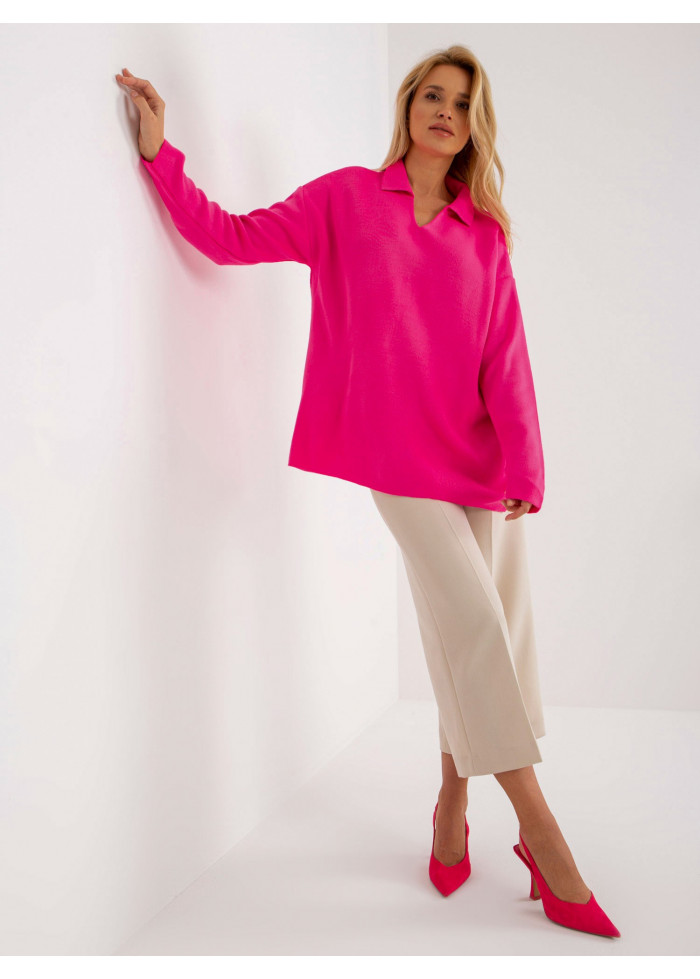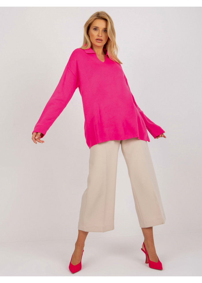 Dámsky pulóver z jemného úpletu, dekolt s golierom, výstrih do v, dlhé rukávy, jednoduchý strih, univerzálna veľkosť, miery modelky: výška 175 cm, prsia 84 cm, pás 65 cm, boky 92 cm., rozmer produktu meraného na plocho:, šírka pod plecami: 65 cm, dĺžka rukáva: 60 cm, celková dĺžka: 71 cm.