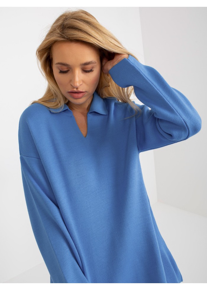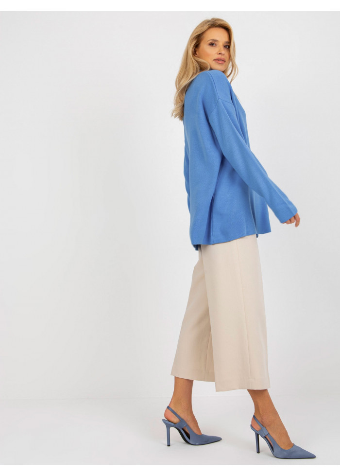 Dámsky pulóver z jemného úpletu, dekolt s golierom, výstrih do v, dlhé rukávy, jednoduchý strih, univerzálna veľkosť, miery modelky: výška 175 cm, prsia 84 cm, pás 65 cm, boky 92 cm., rozmer produktu meraného na plocho:, šírka pod plecami: 65 cm, dĺžka rukáva: 60 cm, celková dĺžka: 71 cm.