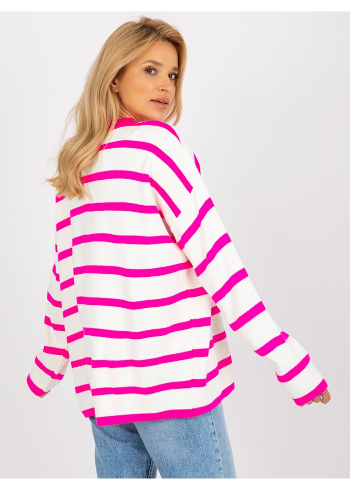 Dámsky pulóver z jemného úpletu, okrúhly výstrih, jednoduchý strih, univerzálna veľkosť, miery modelky: výška 175 cm, prsia 84 cm, pás 65 cm, boky 92 cm., rozmer produktu meraného na plocho:, šírka pod plecami: 65 cm, dĺžka rukáva: 58 cm, celková dĺžka: 68 cm.