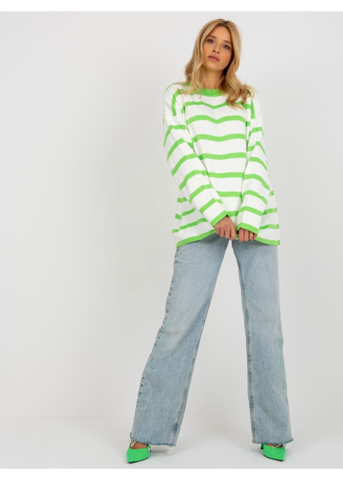 Dámsky pulóver z jemného úpletu, okrúhly výstrih, jednoduchý strih, univerzálna veľkosť, miery modelky: výška 175 cm, prsia 84 cm, pás 65 cm, boky 92 cm., rozmer produktu meraného na plocho:, šírka pod plecami: 65 cm, dĺžka rukáva: 58 cm, celková dĺžka: 68 cm.