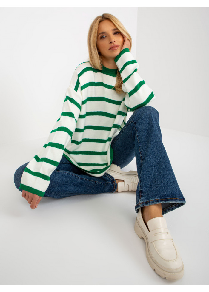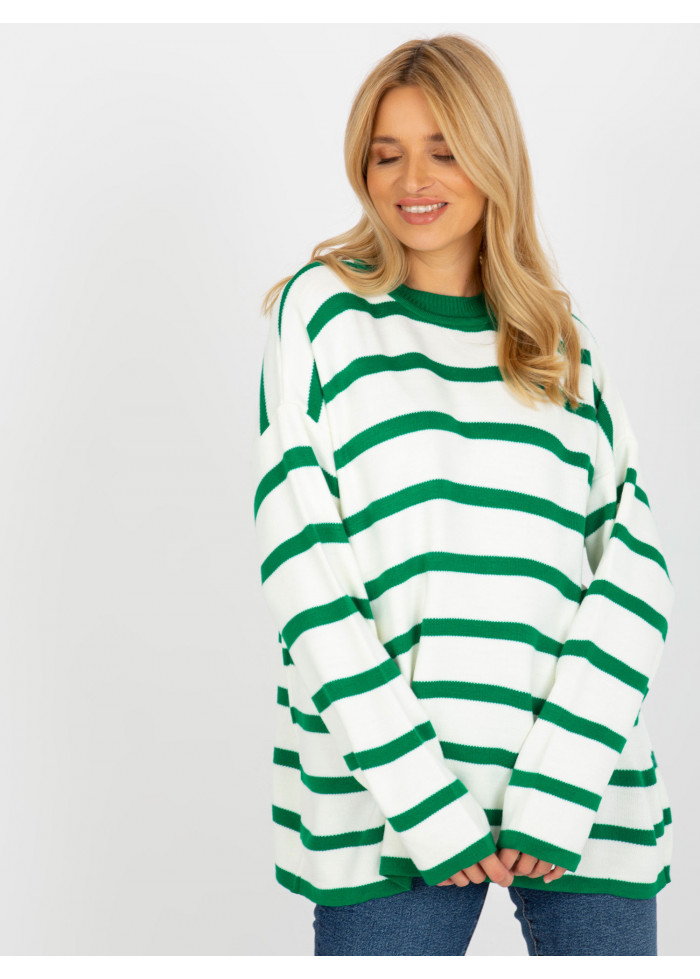 Dámsky pulóver z jemného úpletu, okrúhly výstrih, jednoduchý strih, univerzálna veľkosť, miery modelky: výška 175 cm, prsia 84 cm, pás 65 cm, boky 92 cm., rozmer produktu meraného na plocho:, šírka pod plecami: 65 cm, dĺžka rukáva: 58 cm, celková dĺžka: 68 cm.