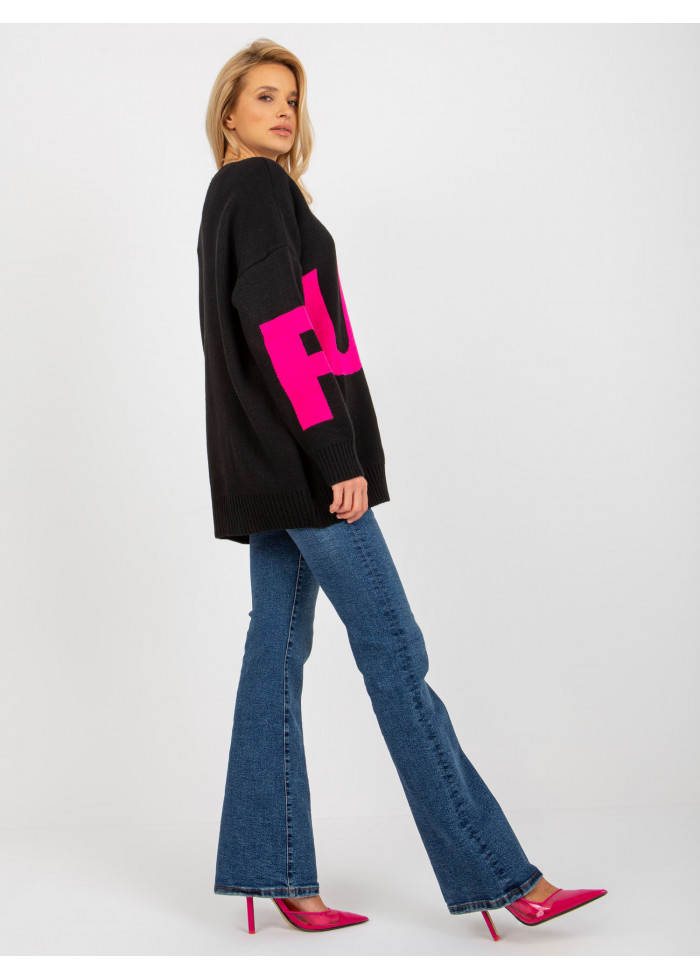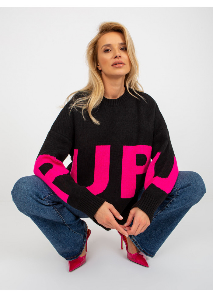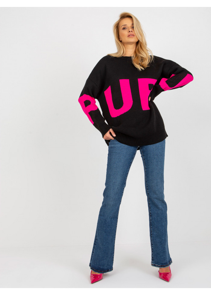 Dámsky pulóver z jemného úpletu, okrúhly výstrih, ozdobný nápis, lémy na koncoch rukávov a v spodnej časti, univerzálna veľkosť, miery modelky: výška 175 cm, prsia 84 cm, pás 65 cm, boky 92 cm., rozmer produktu meraného na plocho:, šírka pod plecami: 67 cm, dĺžka rukáva: 61 cm, celková dĺžka: 81 cm.