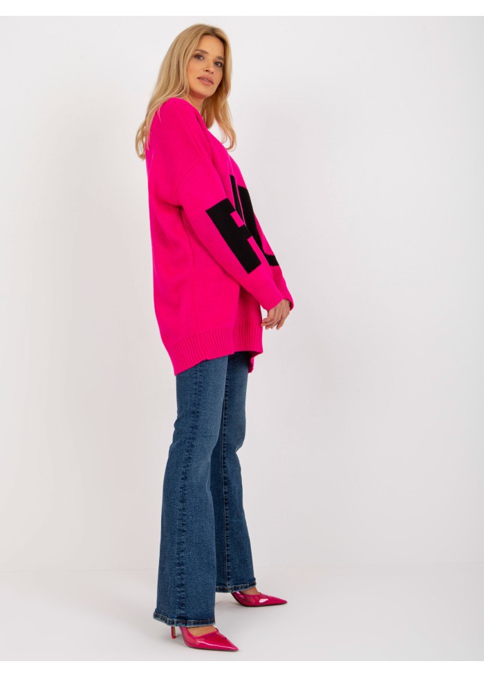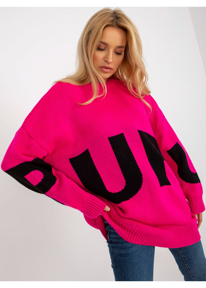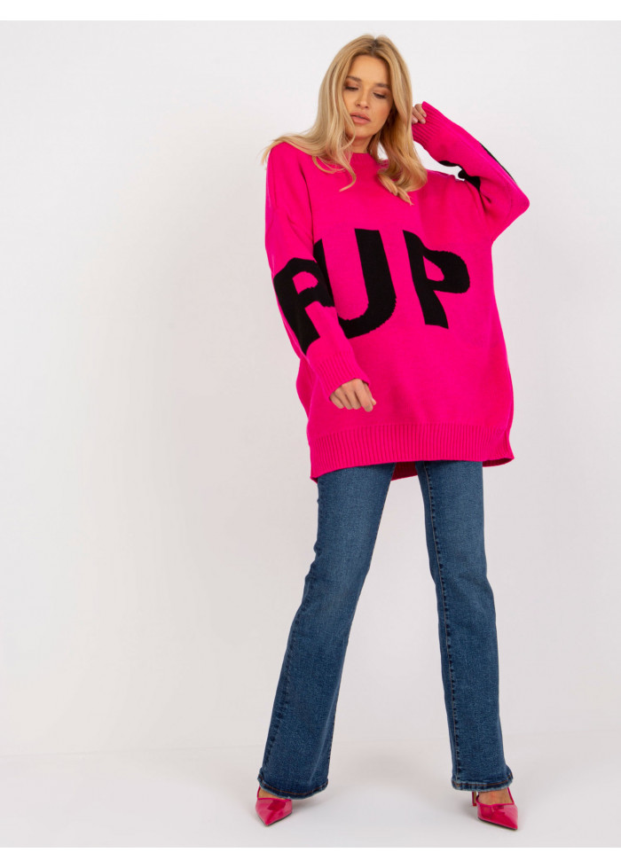 Dámsky pulóver z jemného úpletu, okrúhly výstrih, ozdobný nápis, lémy na koncoch rukávov a v spodnej časti, univerzálna veľkosť, miery modelky: výška 175 cm, prsia 84 cm, pás 65 cm, boky 92 cm., rozmer produktu meraného na plocho:, šírka pod plecami: 67 cm, dĺžka rukáva: 61 cm, celková dĺžka: 81 cm.