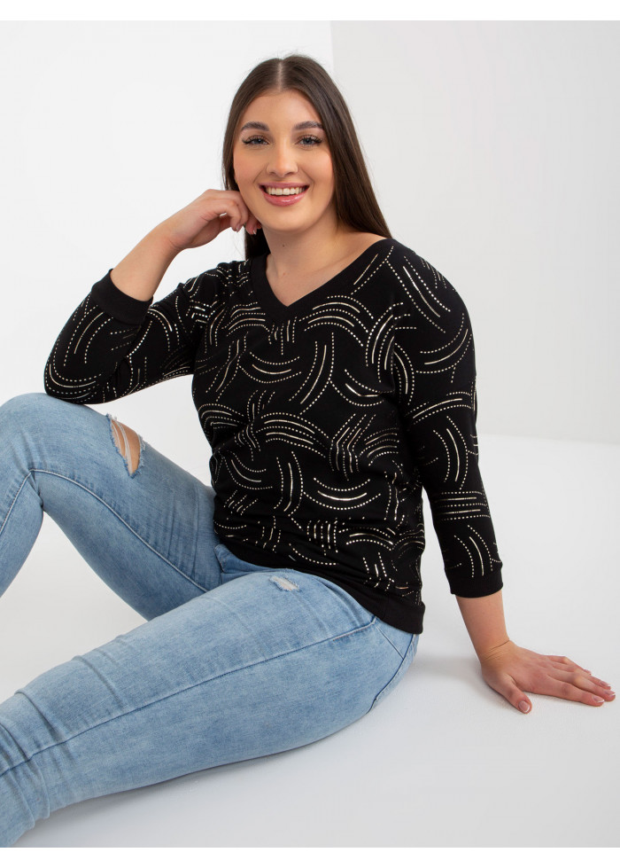 Dámsky pulóver, výstrih do v, 3/4 rukávy, lémy na koncoch rukávov a v spodnej časti, univerzálna veľkosť, miery modelky: výška: 174 cm, prsia: 100 cm, pás: 74 cm, boky: 107 cm, rozmer produktu meraného na plocho:, šírka pod plecami: 58 cm, dĺžka rukáva: 41 cm, celková dĺžka: 62 cm.