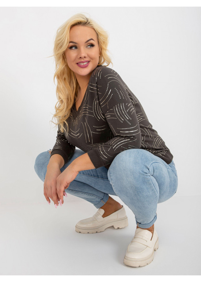 Dámsky pulóver, výstrih do v, 3/4 rukávy, lémy na koncoch rukávov a v spodnej časti, univerzálna veľkosť, miery modelky: výška: 174 cm, prsia: 100 cm, pás: 74 cm, boky: 107 cm, rozmer produktu meraného na plocho:, šírka pod plecami: 58 cm, dĺžka rukáva: 41 cm, celková dĺžka: 62 cm.