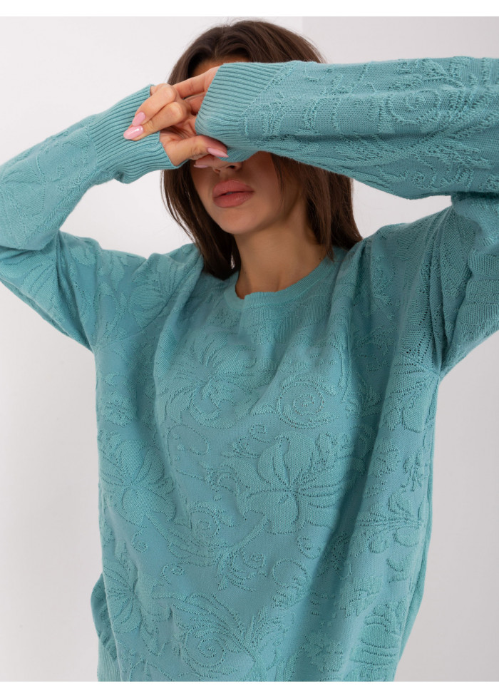 Dámsky pulóver, okrúhly výstrih, jemný úplet, univerzálna veľkosť, miery modelky: výška: 175 cm, prsia: 84 cm, pás: 61 cm, boky: 91 cm, rozmer produktu meraného na plocho:, šírka pod plecami: 60 cm, dĺžka rukáva: 63 cm, celková dĺžka: 64 cm.
