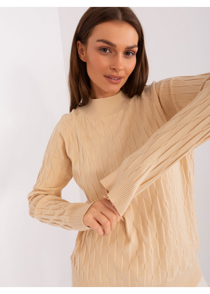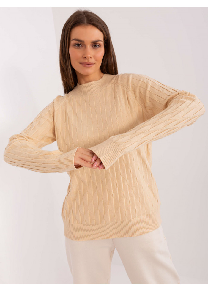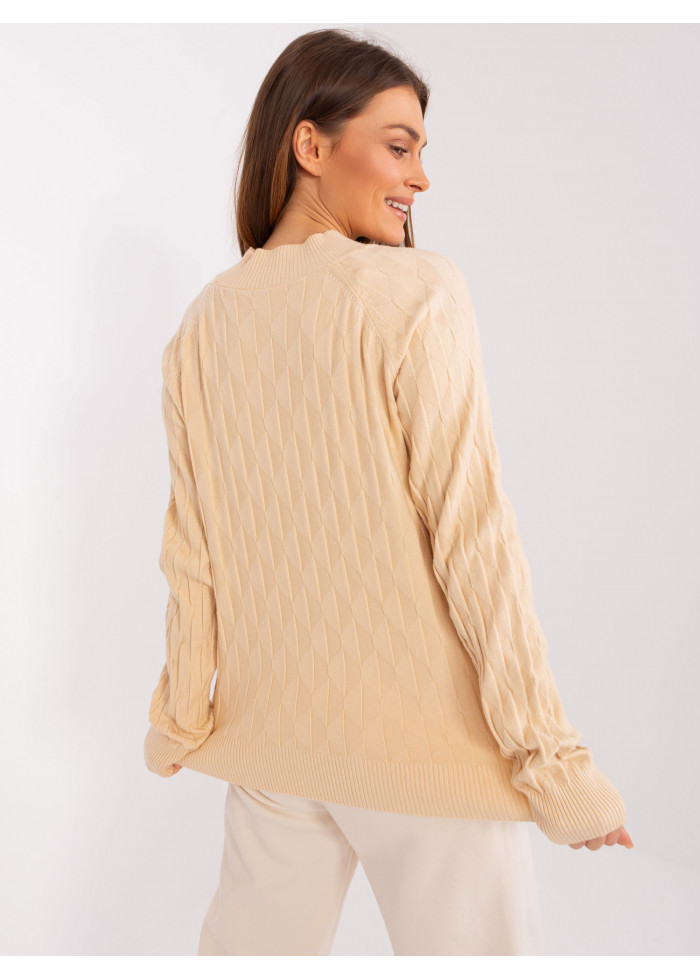 Dámsky pulóver, jemný úplet, pletený vzor, okrúhly výstrih, univerzálna veľkosť, miery modelky: výška: 172 cm, prsia: 88 cm, pás: 63 cm, boky: 92 cm, rozmer produktu meraného na plocho:, šírka pod plecami: 60 cm, dĺžka rukáva: 67 cm, celková dĺžka: 65 cm.