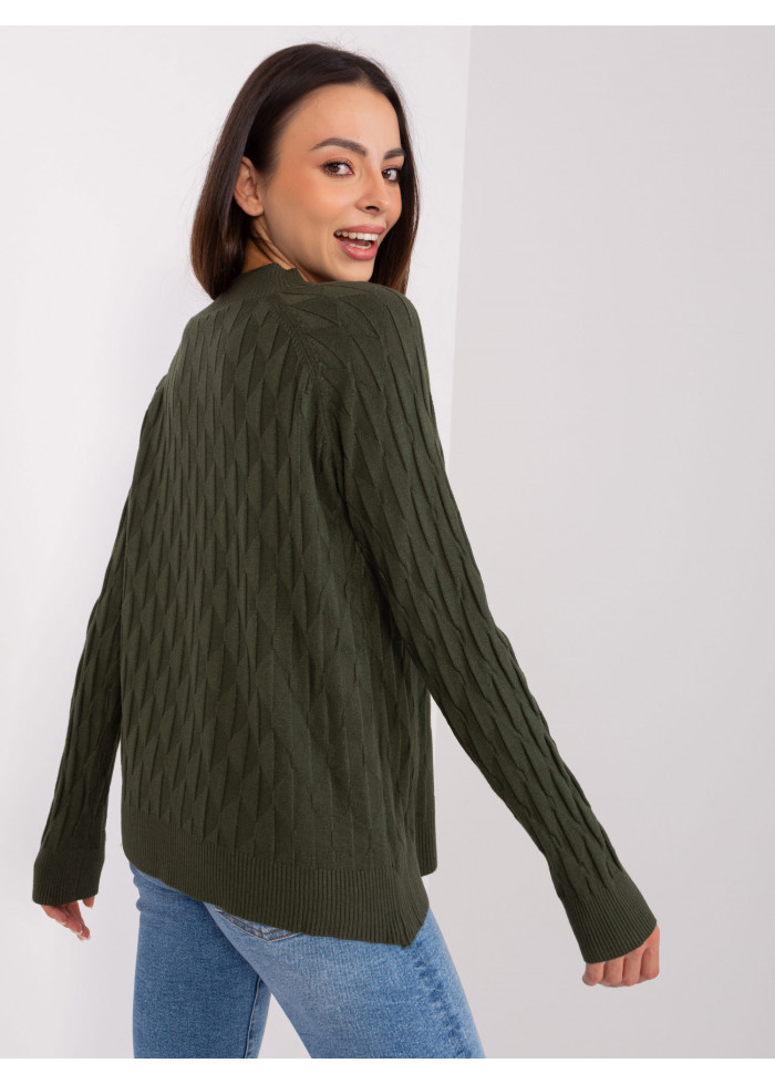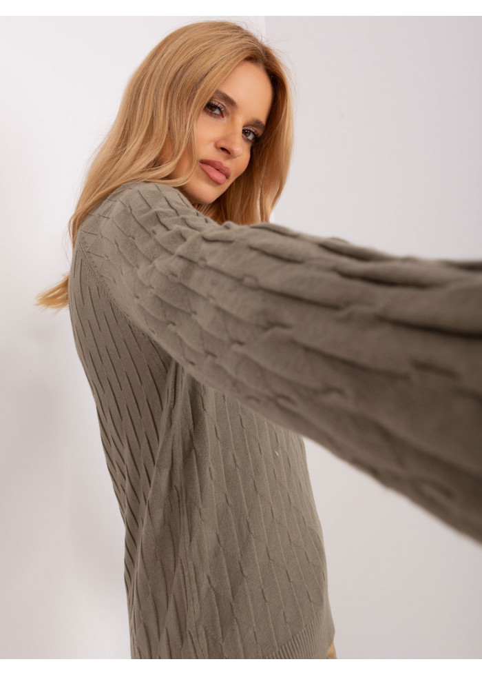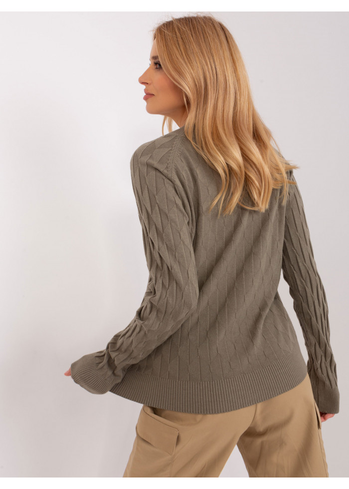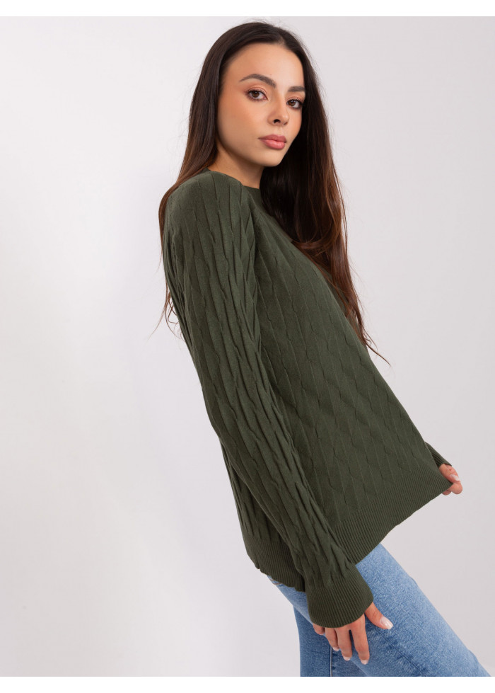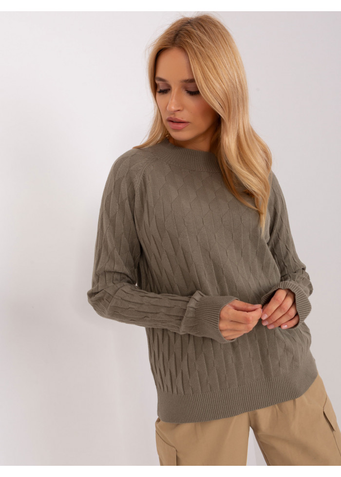 Dámsky pulóver, jemný úplet, pletený vzor, okrúhly výstrih, univerzálna veľkosť, miery modelky: výška: 172 cm, prsia: 88 cm, pás: 63 cm, boky: 92 cm, rozmer produktu meraného na plocho:, šírka pod plecami: 60 cm, dĺžka rukáva: 67 cm, celková dĺžka: 65 cm.