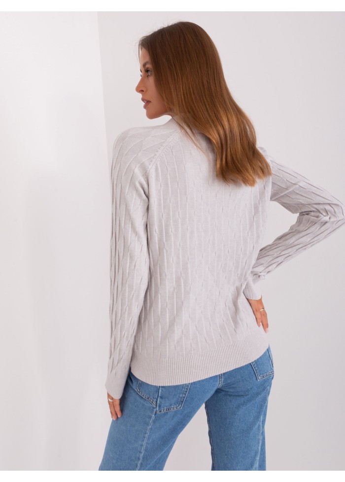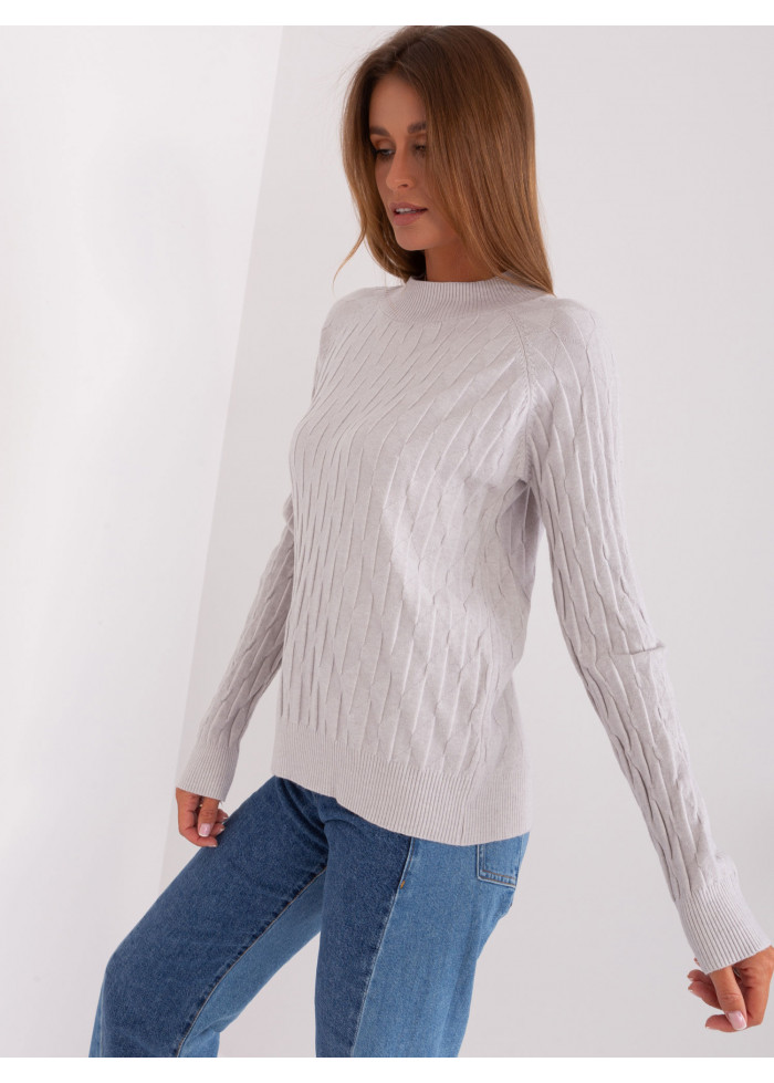Dámsky pulóver, jemný úplet, pletený vzor, okrúhly výstrih, univerzálna veľkosť, miery modelky: výška: 172 cm, prsia: 88 cm, pás: 63 cm, boky: 92 cm, rozmer produktu meraného na plocho:, šírka pod plecami: 60 cm, dĺžka rukáva: 67 cm, celková dĺžka: 65 cm.