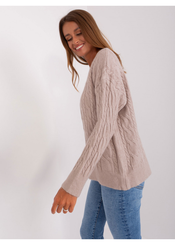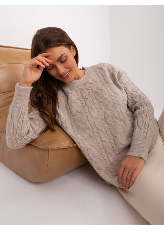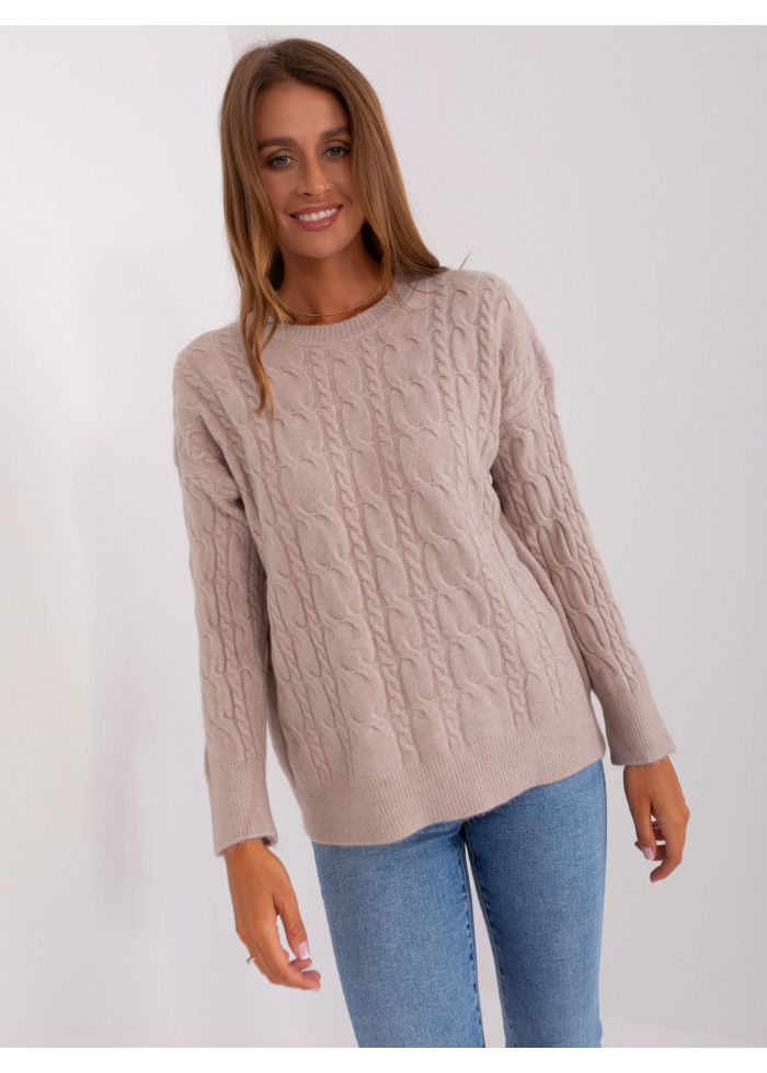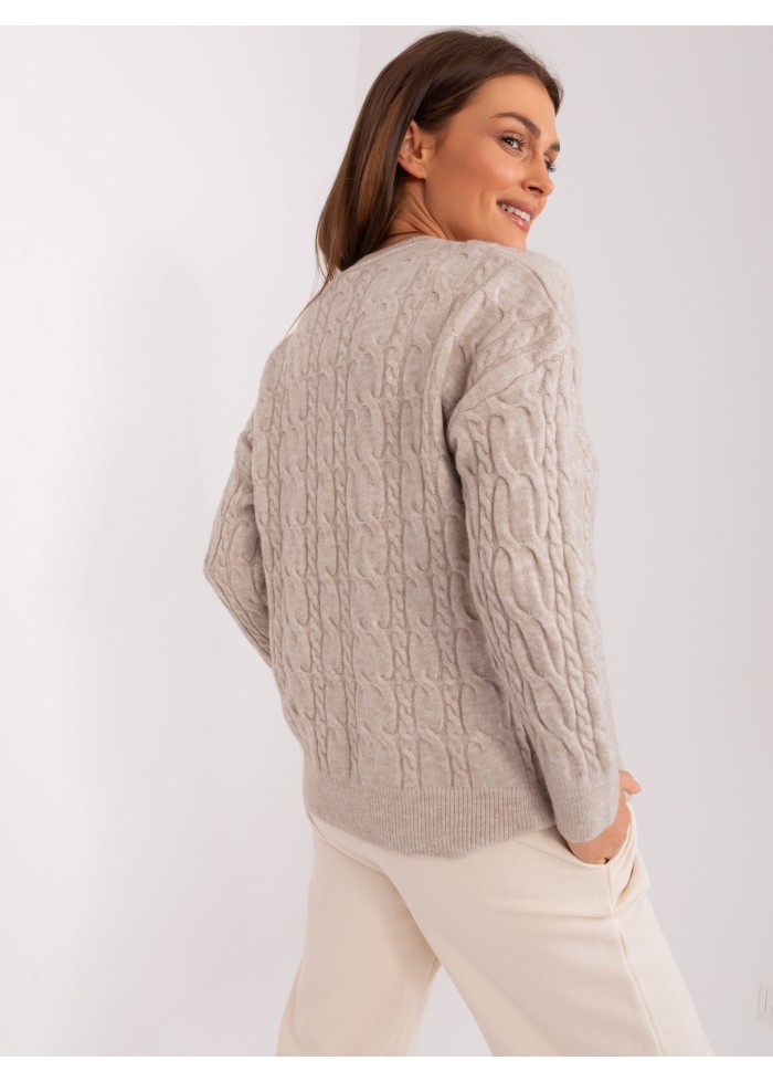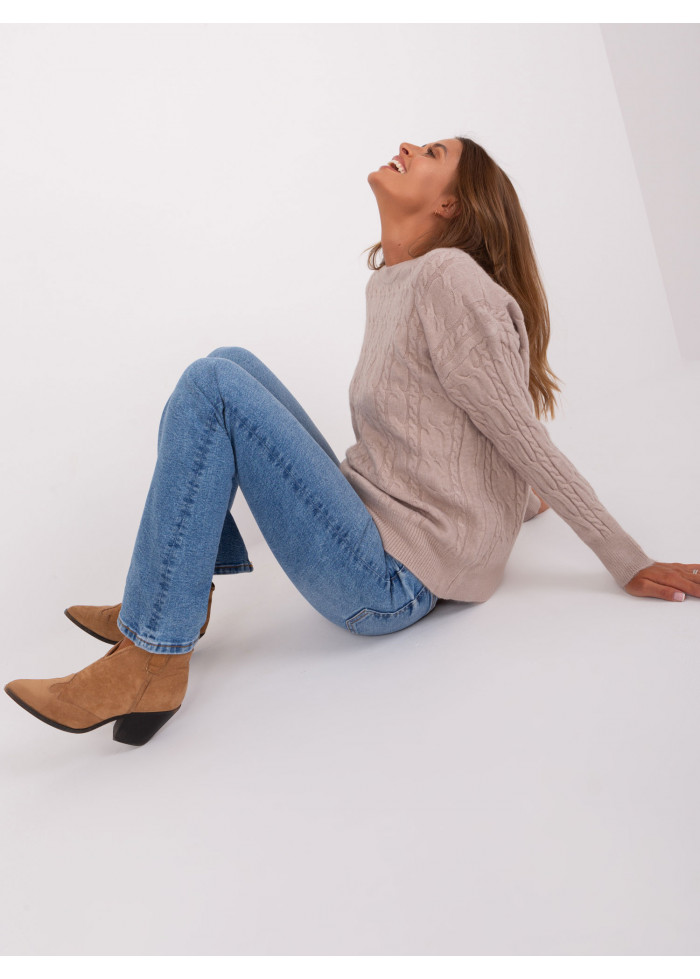 Dámsky pulóver, jemný pletený vzor, univerzálna veľkosť, miery modelky: výška: 175 cm, prsia: 90 cm, pás: 66 cm, boky: 94 cm, rozmer produktu meraného na plocho:, šírka pod plecami: 60 cm, dĺžka rukáva: 60 cm, celková dĺžka: 63 cm.