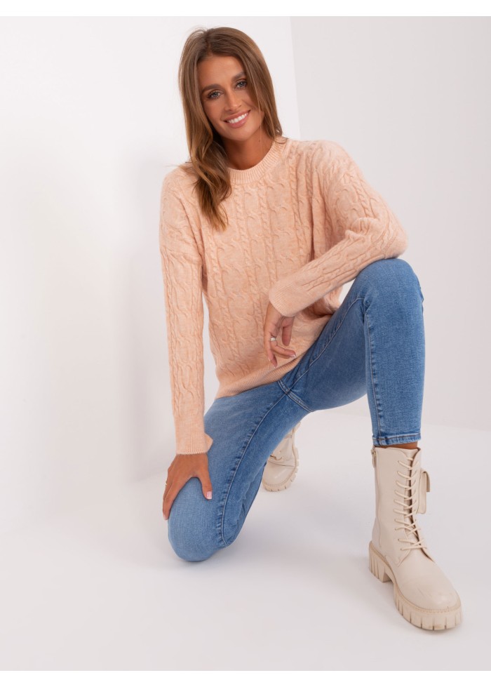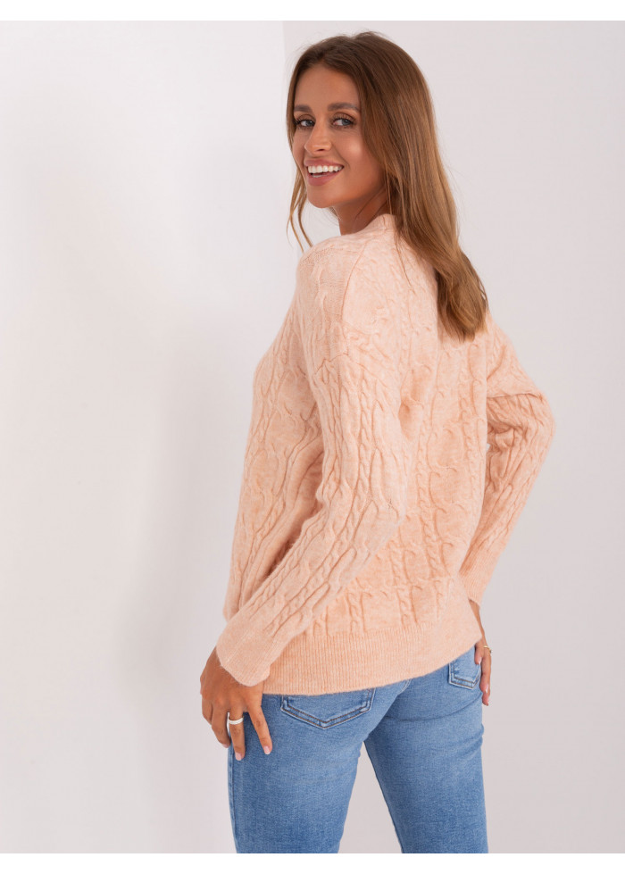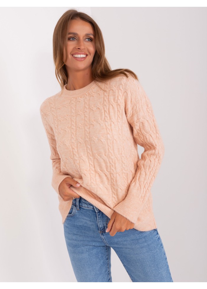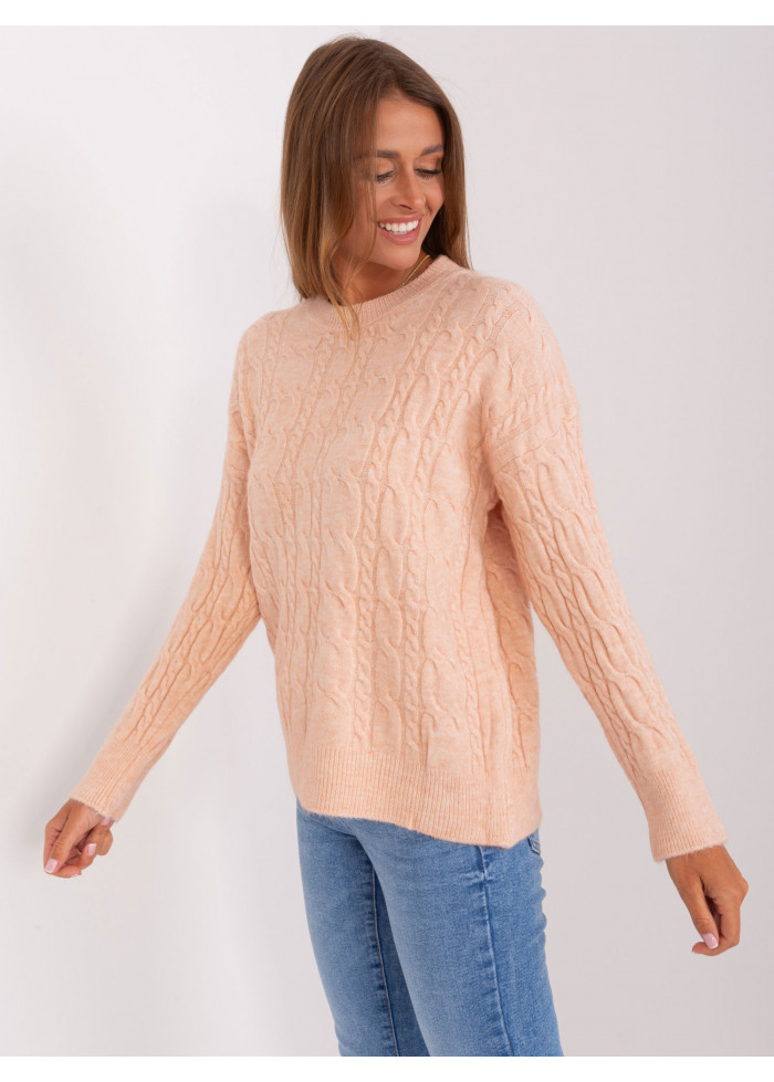 Dámsky pulóver, jemný pletený vzor, univerzálna veľkosť, miery modelky: výška: 175 cm, prsia: 90 cm, pás: 66 cm, boky: 94 cm, rozmer produktu meraného na plocho:, šírka pod plecami: 60 cm, dĺžka rukáva: 60 cm, celková dĺžka: 63 cm.