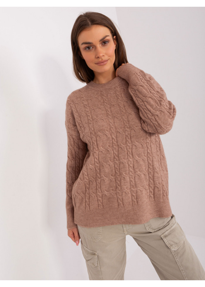 Dámsky pulóver, jemný pletený vzor, univerzálna veľkosť, miery modelky: výška: 175 cm, prsia: 90 cm, pás: 66 cm, boky: 94 cm, rozmer produktu meraného na plocho:, šírka pod plecami: 60 cm, dĺžka rukáva: 60 cm, celková dĺžka: 63 cm.