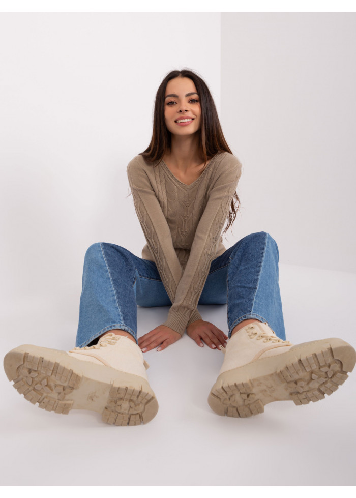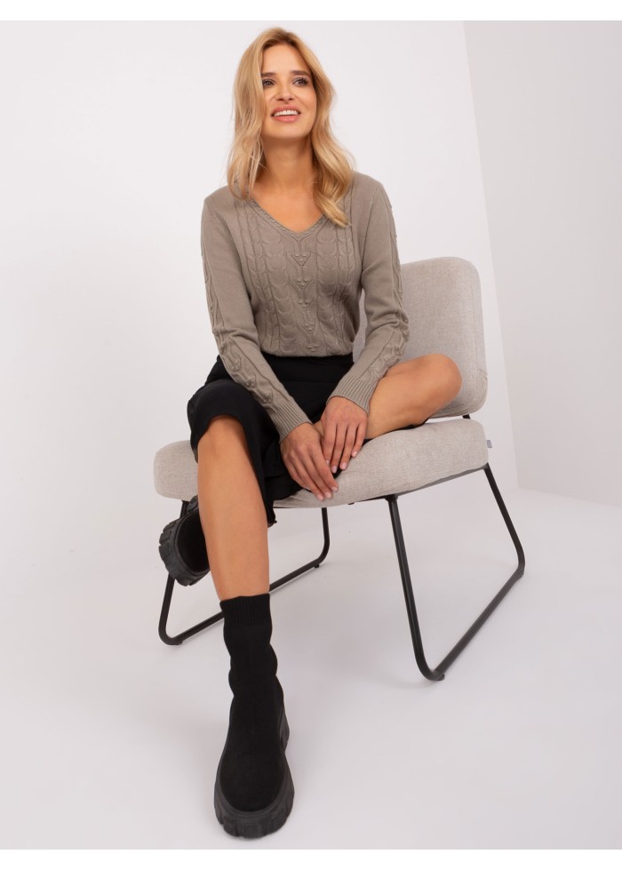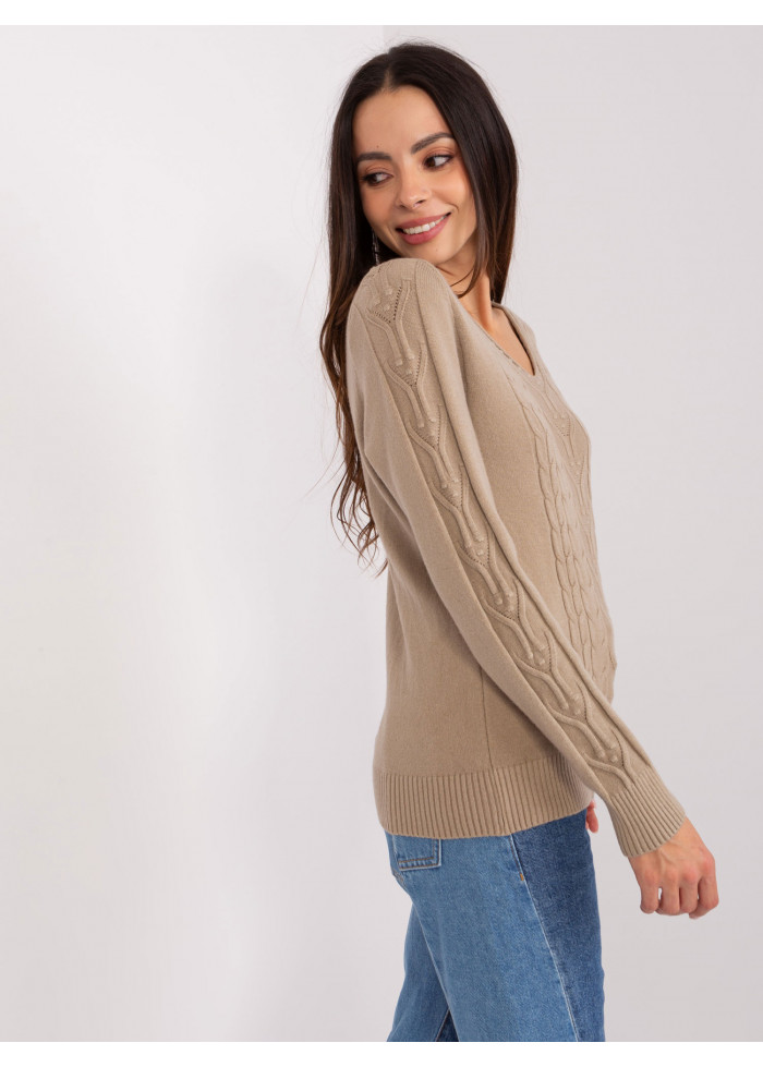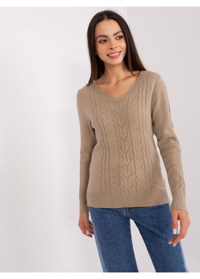 Dámsky pulóver, jemný úplet, výstrih do v, pletený vzor, univerzálna veľkosť, miery modelky: výška 176 cm, prsia 85 cm, pás 64 cm, boky 92 cm, rozmer produktu meraného na plocho:, šírka pod plecami: 55 cm, dĺžka rukáva: 65 cm, celková dĺžka: 65 cm.