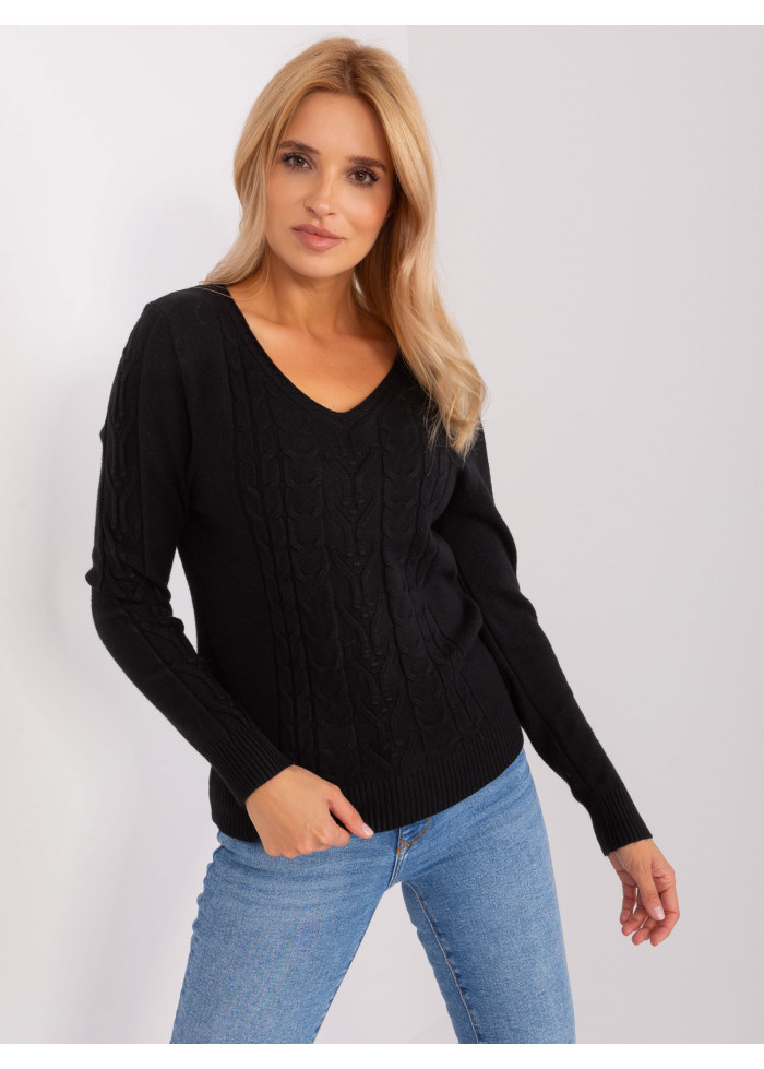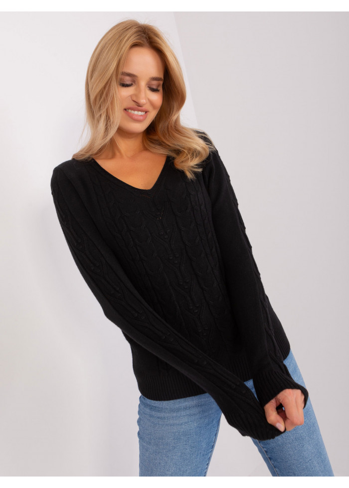 Dámsky pulóver, jemný úplet, výstrih do v, pletený vzor, univerzálna veľkosť, miery modelky: výška 176 cm, prsia 85 cm, pás 64 cm, boky 92 cm, rozmer produktu meraného na plocho:, šírka pod plecami: 55 cm, dĺžka rukáva: 65 cm, celková dĺžka: 65 cm.