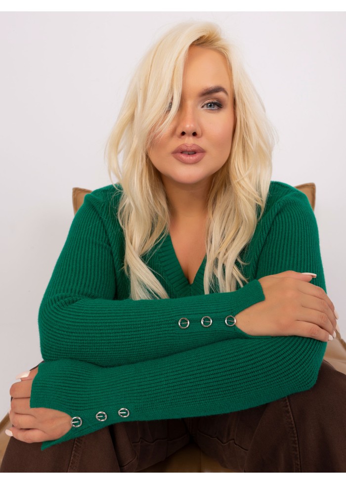 Dámsky pulóver, výstrih do v, rozparky na rukávoch, ozdobné gombíky na rukávoch, rebrovaný úplet, modelka má na sebe veľkosť l/xl, miery modelky: výška 172 cm, prsia 103 cm, pás 73 cm, boky 103 cm., rozmer produktu meraného na plocho, vo veľkosti l/xl:, šírka pod plecami: 55 cm, dĺžka rukáva: 65 cm, celková dĺžka: 70 cm.