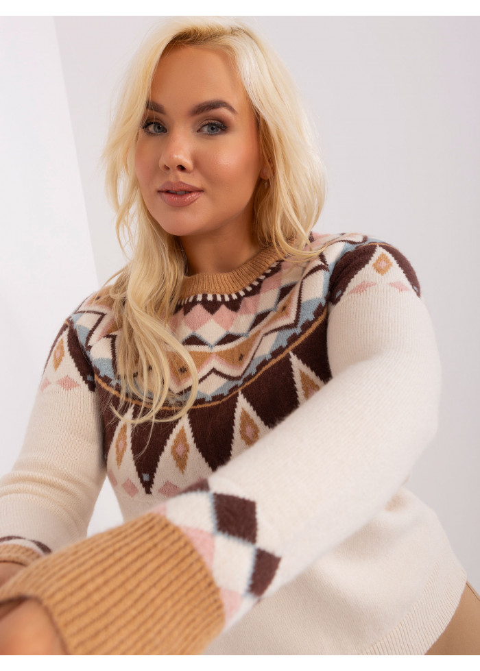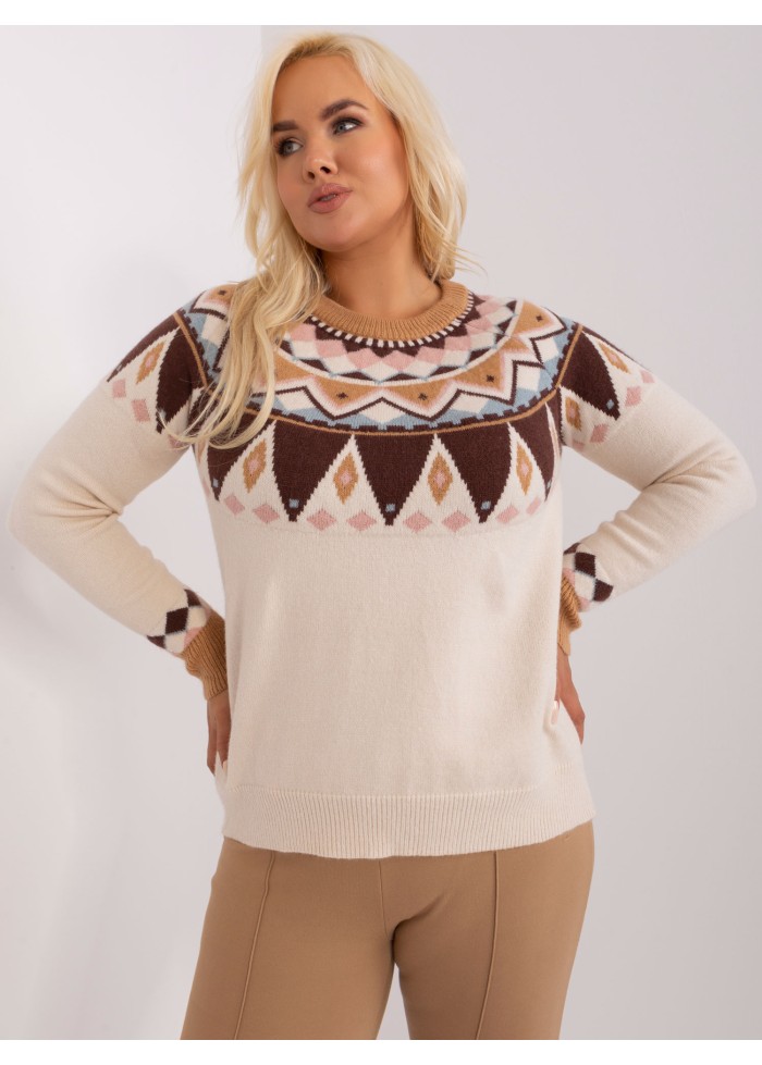 Dámsky pulóver, vzorovaný, okrúhly výstrih, jemný úplet, modelka má na sebe veľkosť l/xl, miery modelky: výška 172 cm, prsia 103 cm, pás 73 cm, boky 103 cm., rozmer produktu meraného na plocho, vo veľkosti l/xl:, šírka pod plecami: 60 cm, dĺžka rukáva: 64 cm, celková dĺžka: 65 cm.