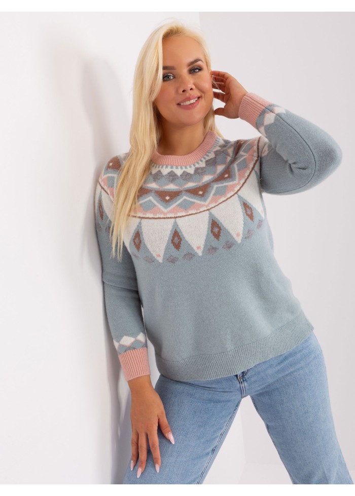 Dámsky pulóver, vzorovaný, okrúhly výstrih, jemný úplet, modelka má na sebe veľkosť l/xl, miery modelky: výška 172 cm, prsia 103 cm, pás 73 cm, boky 103 cm., rozmer produktu meraného na plocho, vo veľkosti l/xl:, šírka pod plecami: 60 cm, dĺžka rukáva: 64 cm, celková dĺžka: 65 cm.