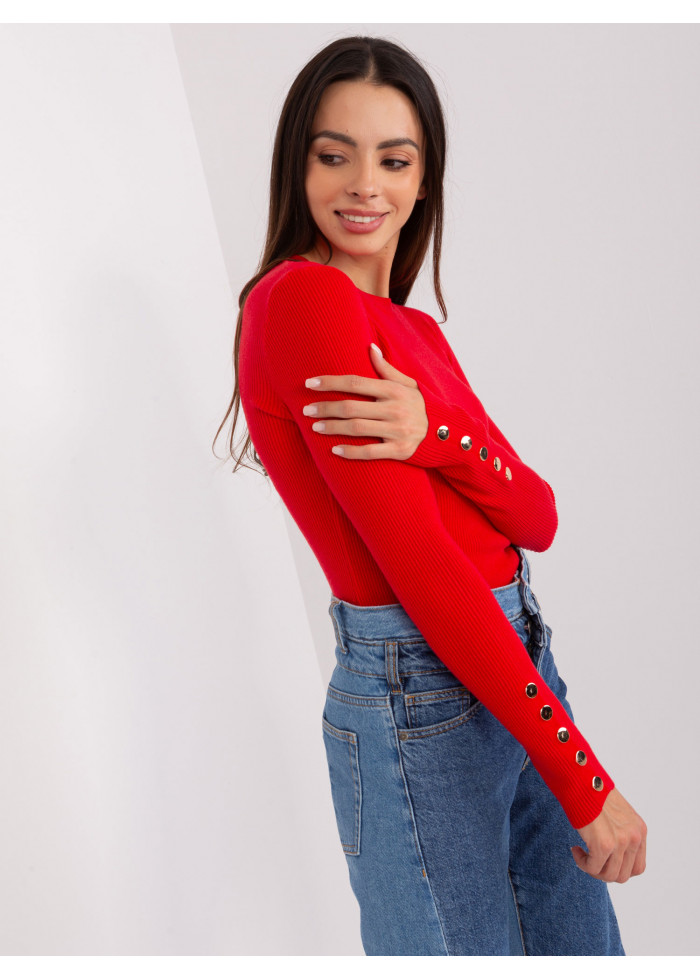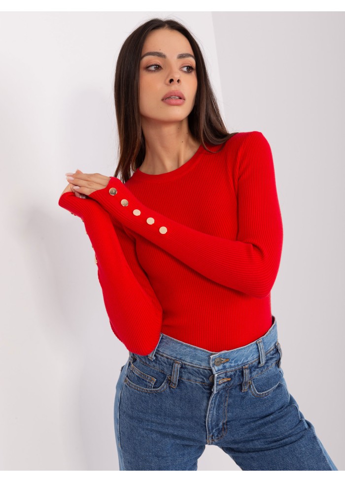 Dámsky pulóver, okrúhly výstrih, jemný rebrovaný úplet, ozdobné gombíky na rukávoch, modelka má na sebe veľkosť s/m, miery modelky: výška: 175 cm, prsia: 84 cm, pás: 61 cm, boky: 91 cm, rozmer produktu meraného na plocho, vo veľkosti s/m:, šírka pod plecami: 50 cm, dĺžka rukáva: 64 cm, celková dĺžka: 64 cm.